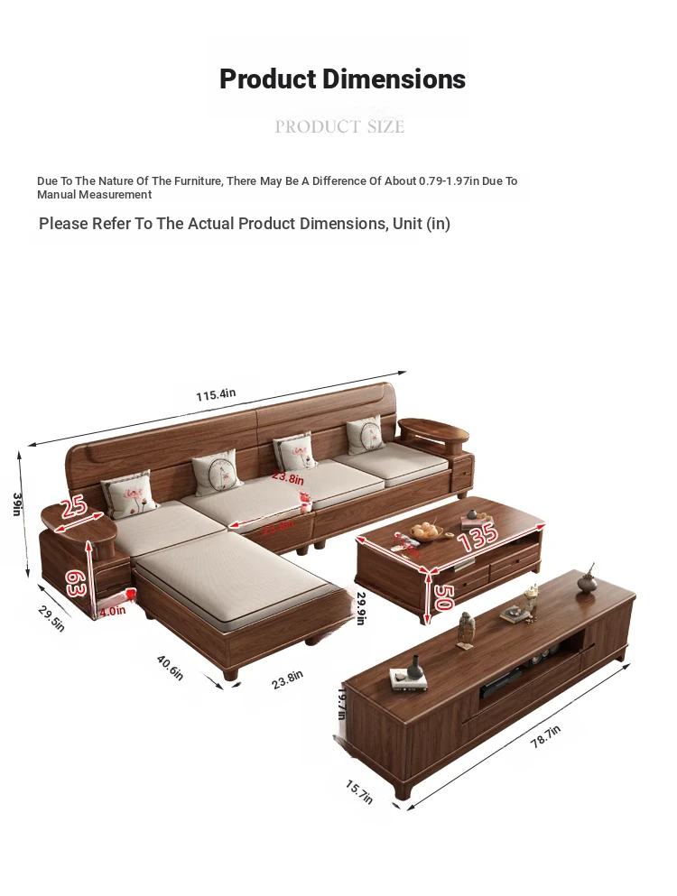 122.05 in + imperial concubine couch + tea table + square table + TV cabinet