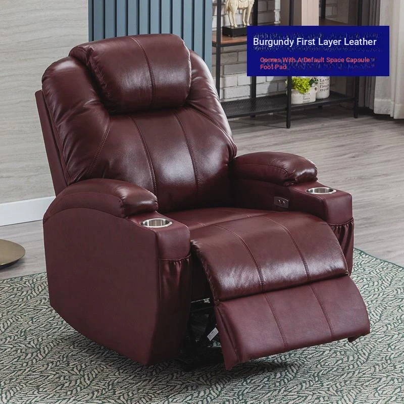 Wine red head layer leather electric sitting and lying
