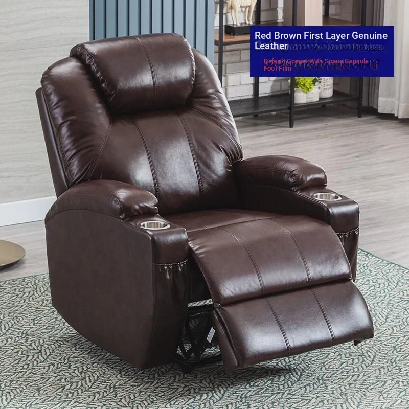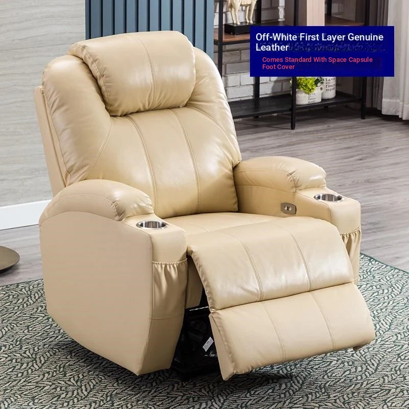 Premium Space Capsule Sofa - Single Electric Recliner with Multi-Function Massage for Ultimate Relaxation - Perfect for Home Theater in Genuine Leather