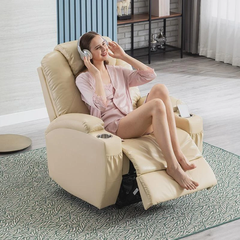 Creamy-white head layer leather electric sitting and lying