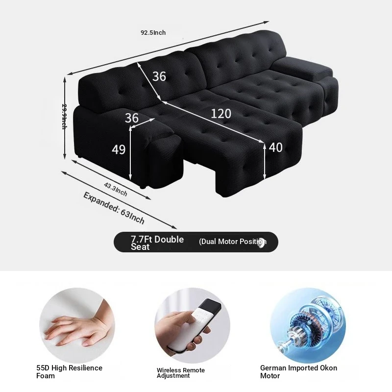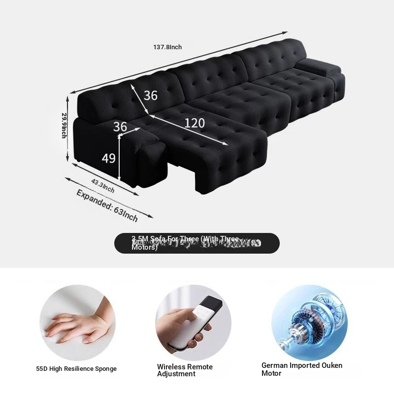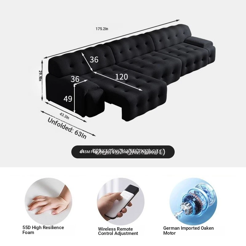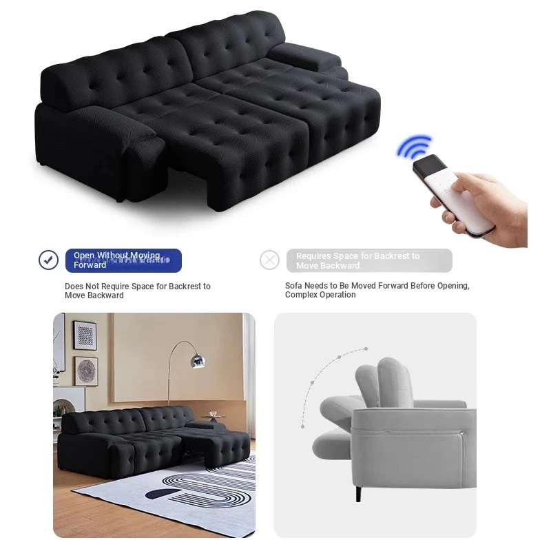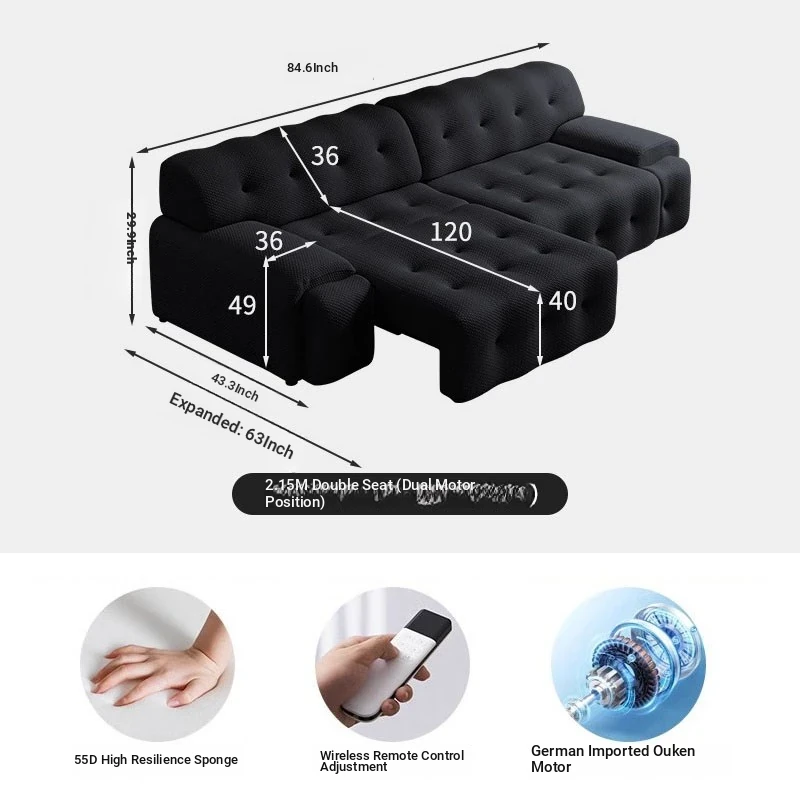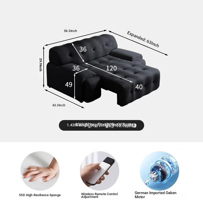 Rochford Electric Sofa Bed - Adjustable, Expandable, and Foldable Multi-Functional Italian Style in Black Fabric for Your Living Room