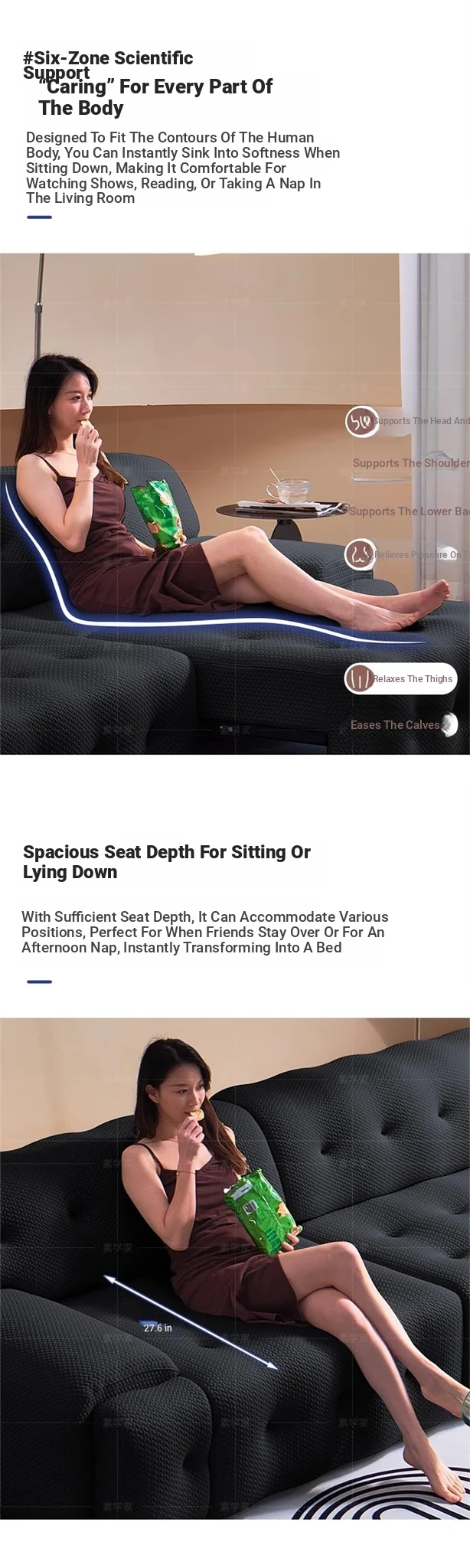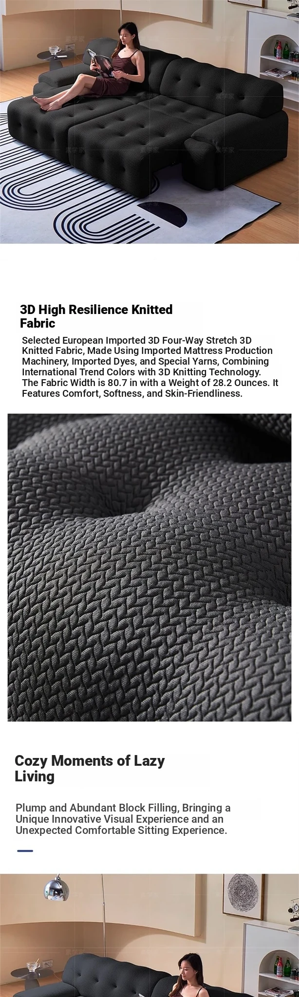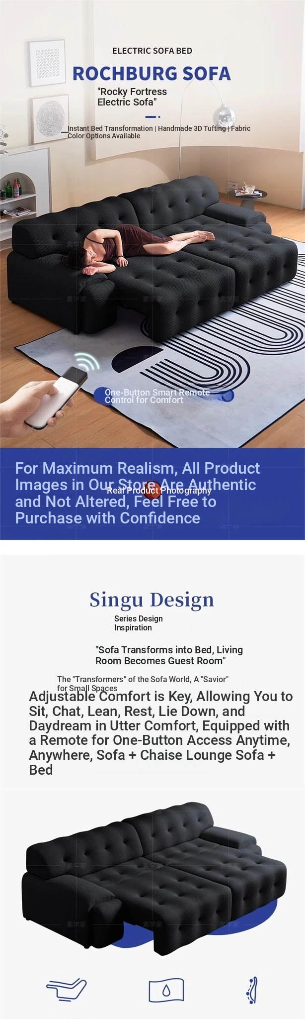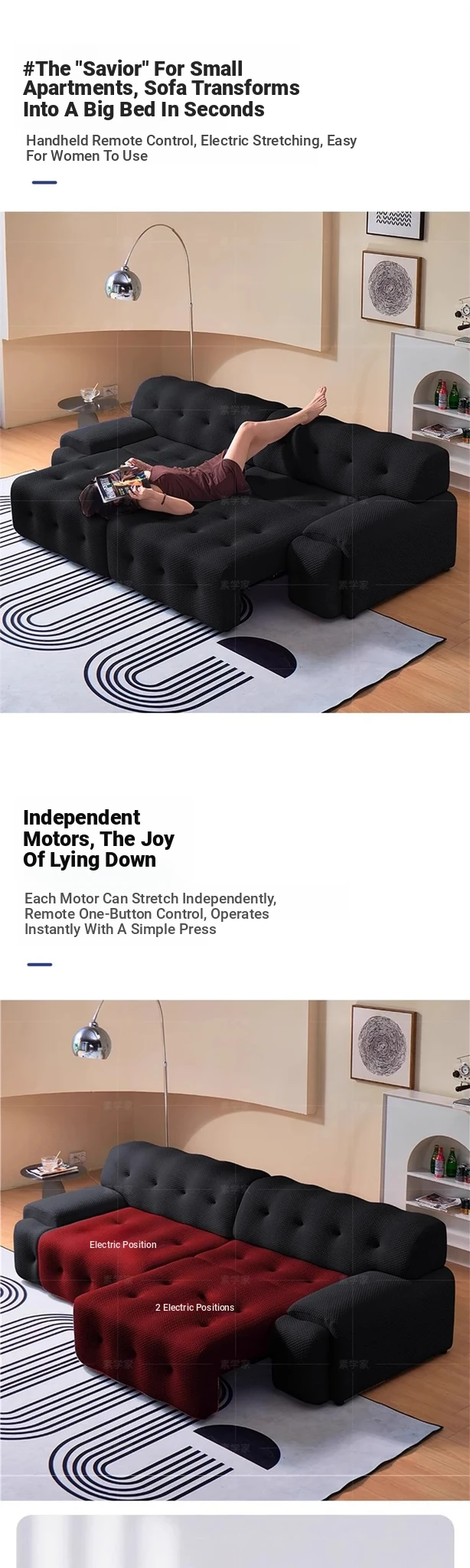 Rochford Electric Sofa Bed - Adjustable, Expandable, and Foldable Multi-Functional Italian Style in Black Fabric for Your Living Room