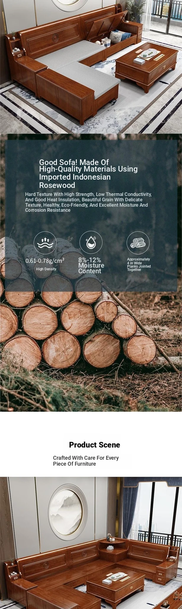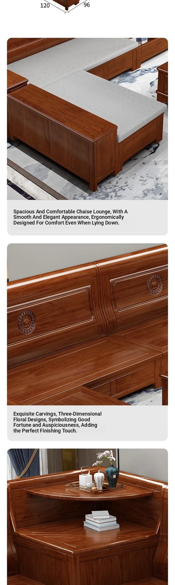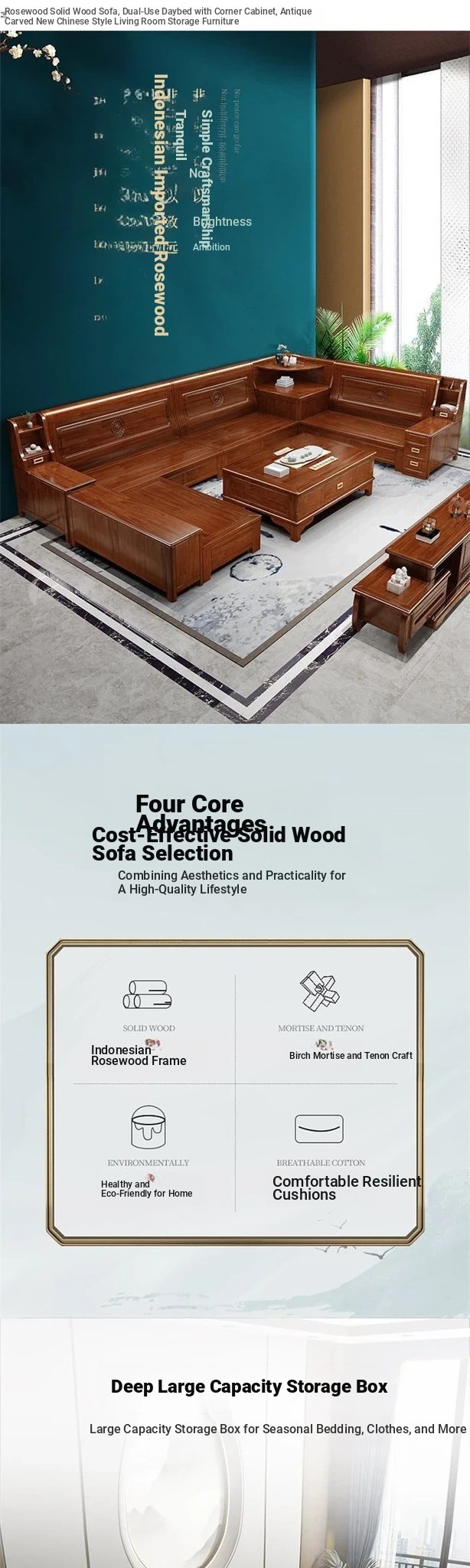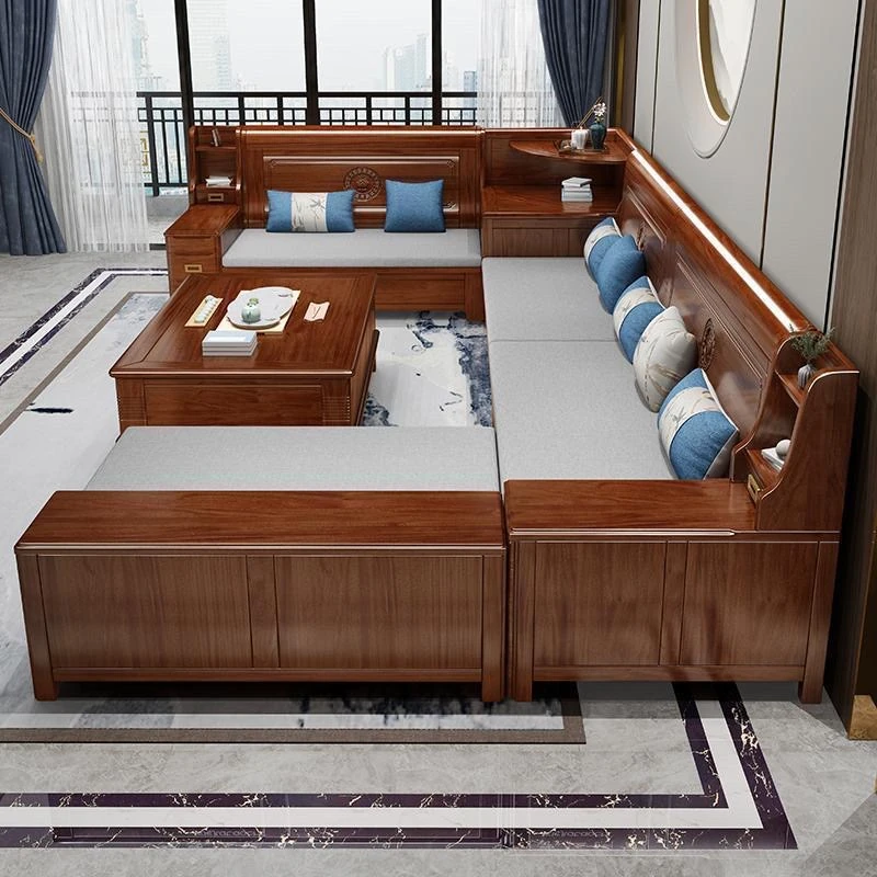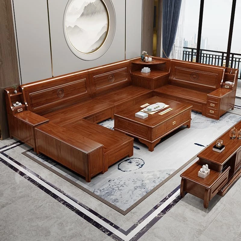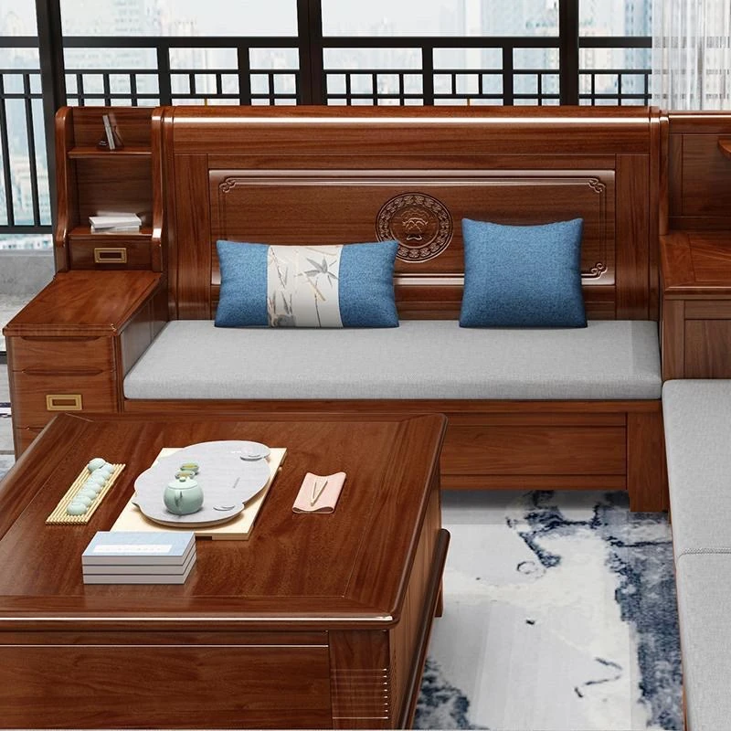Solid Rosewood Sofa for Small Living Rooms - Versatile Corner Chaise Lounge for Winter and Summer, Featuring Storage Space - New Chinese Style All Solid Wood Furniture