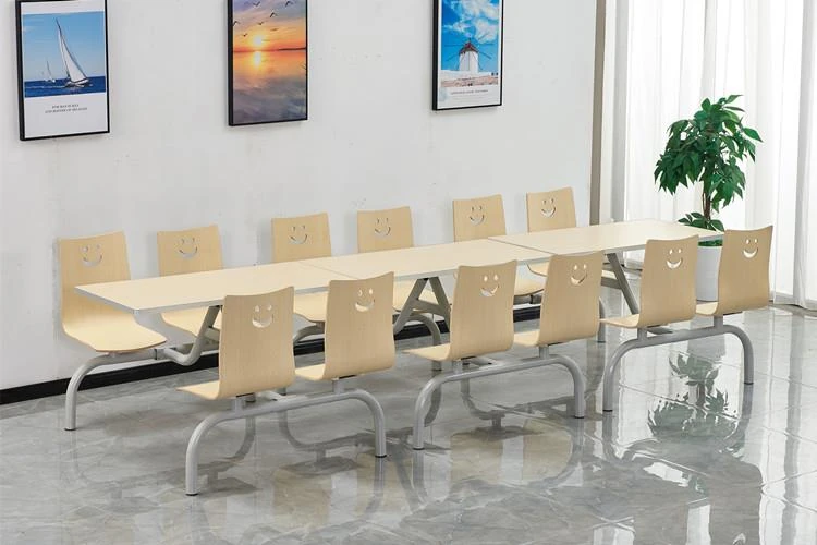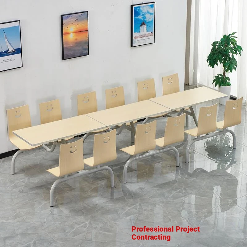 Stainless Steel Canteen Dining Table and Chair Set for 4-6 People - Perfect for Schools, Offices, and Cafeterias - Durable and Easy to Clean Fast Food Furniture Combo