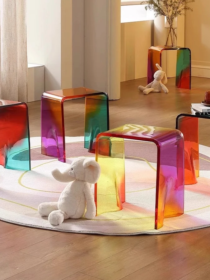 Stylish Acrylic Shoe Changing Stool - Transparent Home Low Dining Chair, Perfect for Entryways and Bathrooms, Trendy INS Design