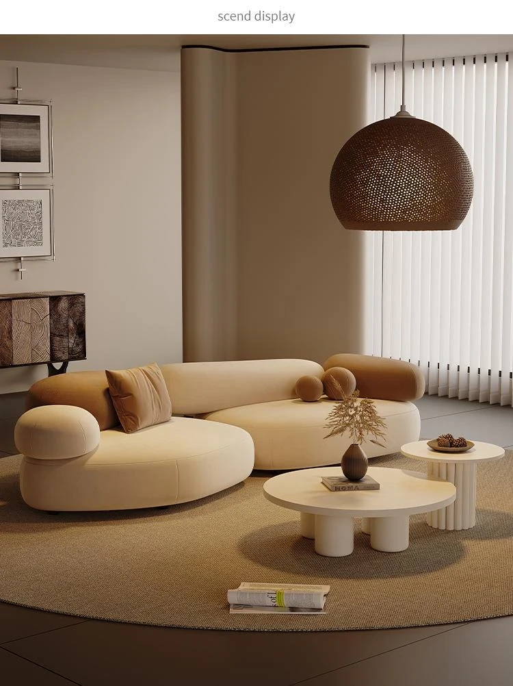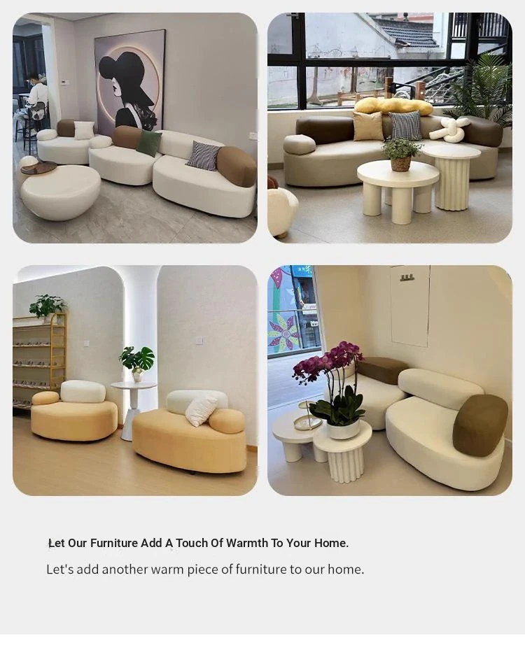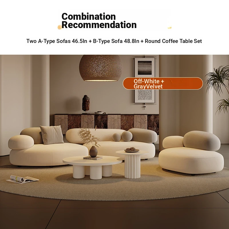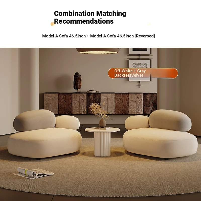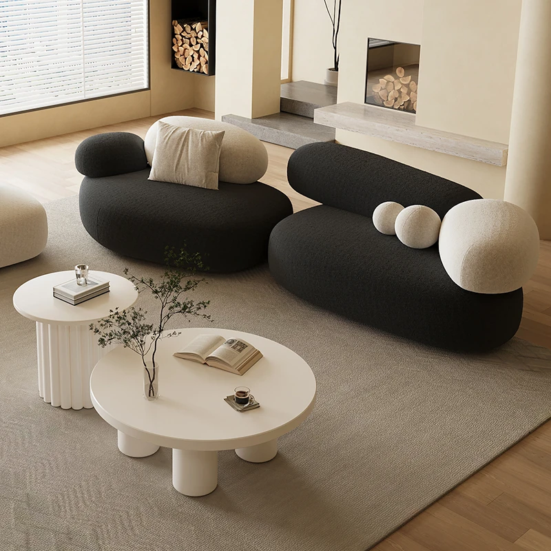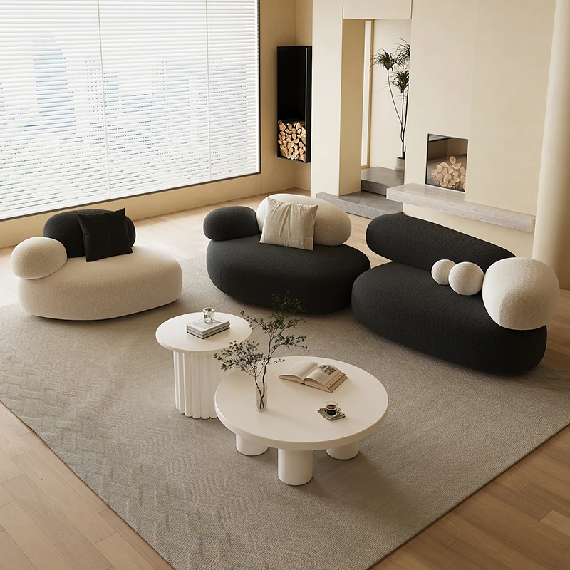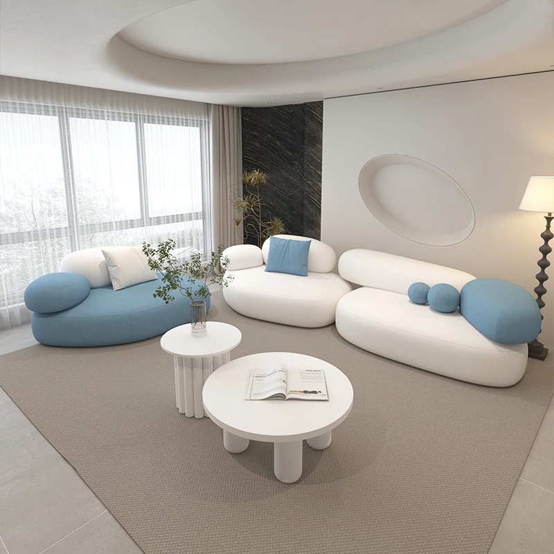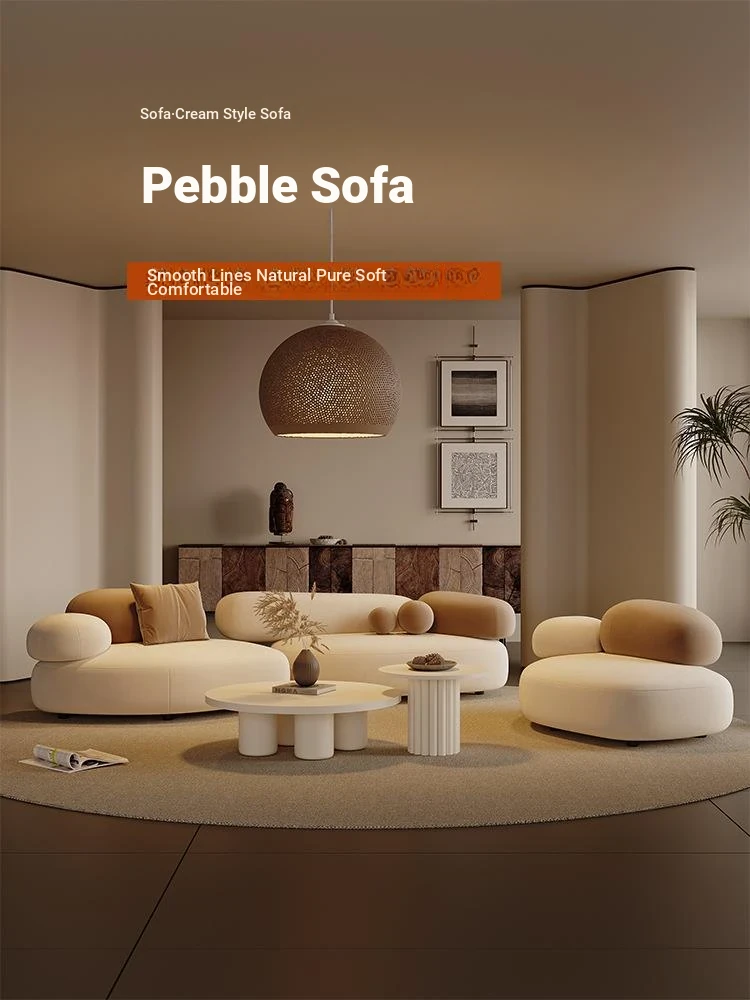Stylish Minimalist Pebble Sofa for Living Room – Creamy Aesthetic Design Perfect for Beauty Salons and Relaxation Areas, Unique Shape with Matching Tables and Chairs