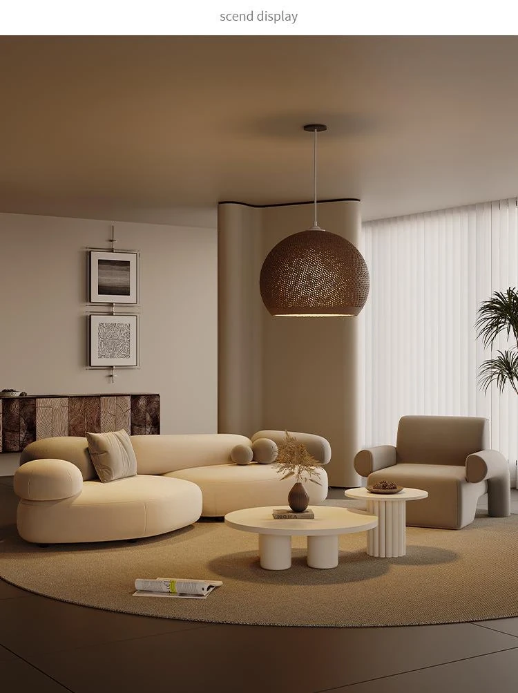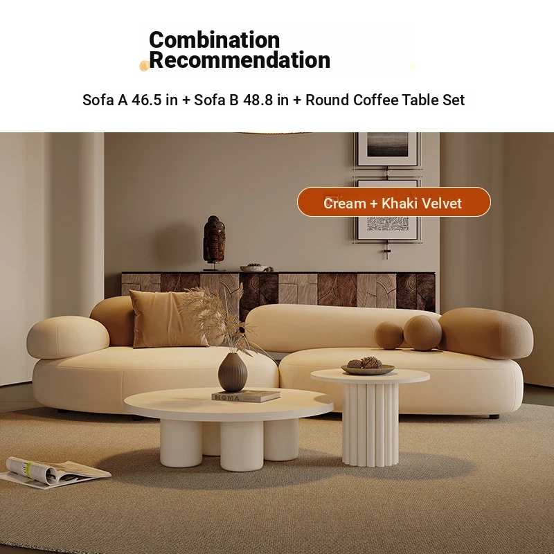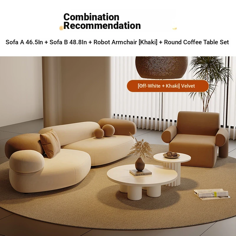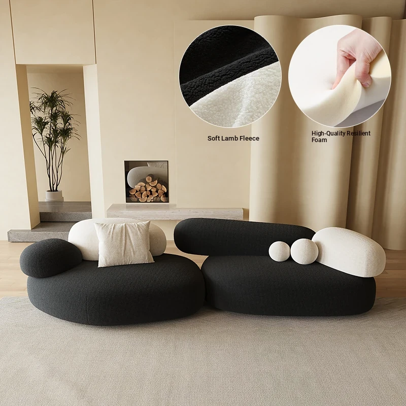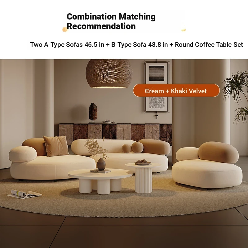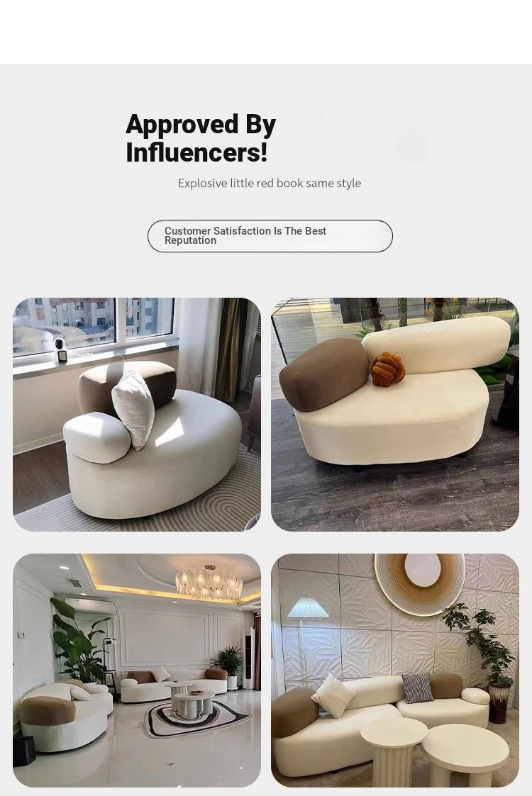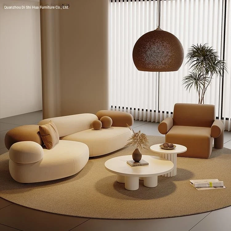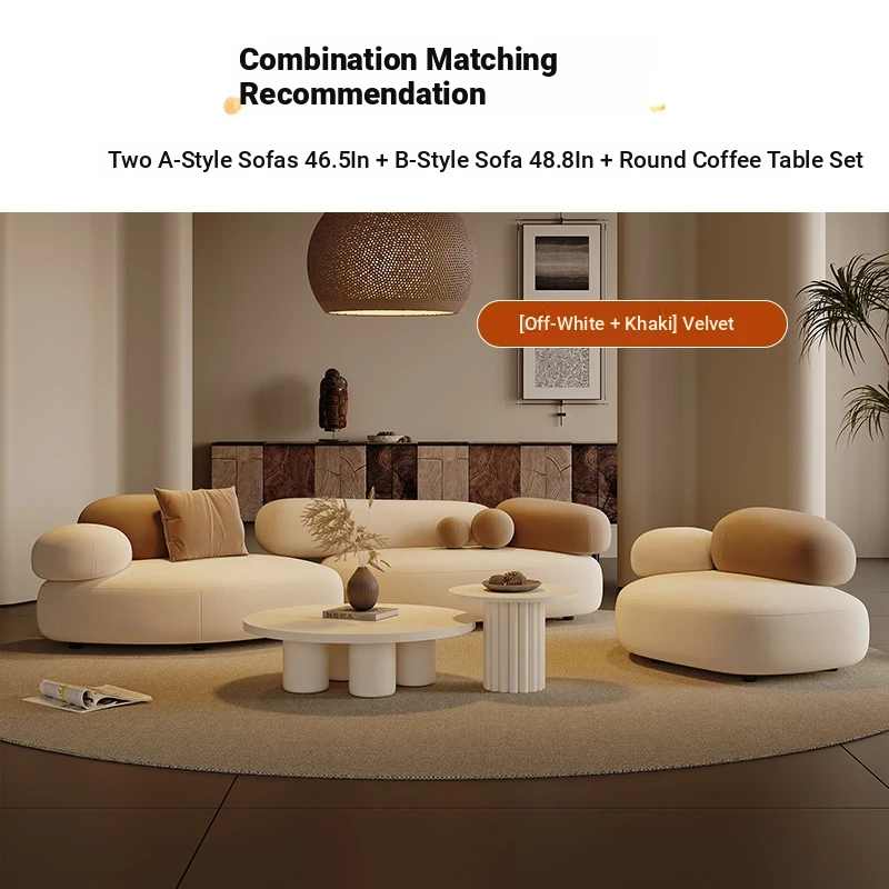 Stylish Minimalist Pebble Sofa for Living Room – Creamy Aesthetic Design Perfect for Beauty Salons and Relaxation Areas, Unique Shape with Matching Tables and Chairs