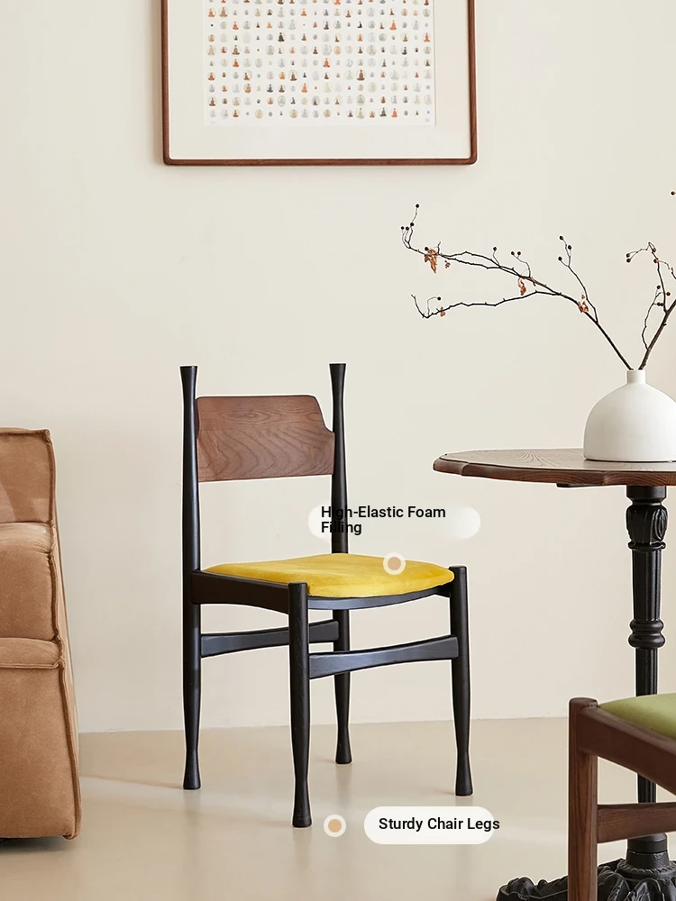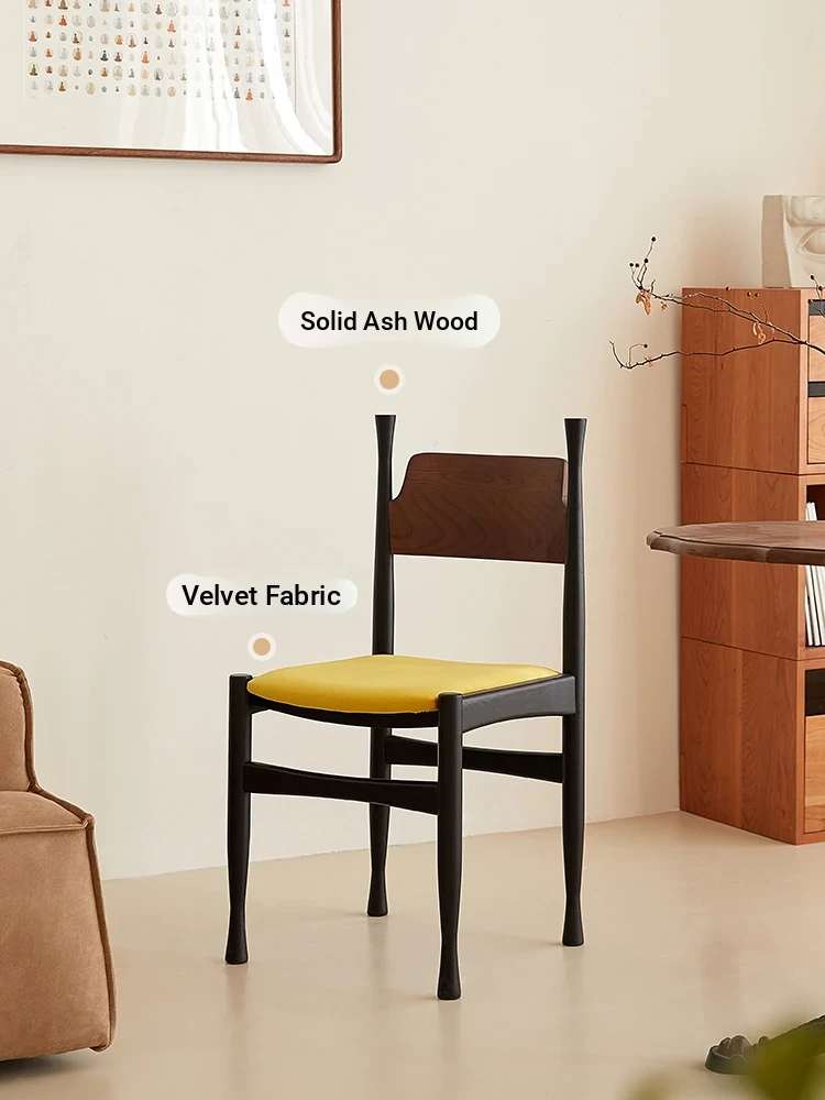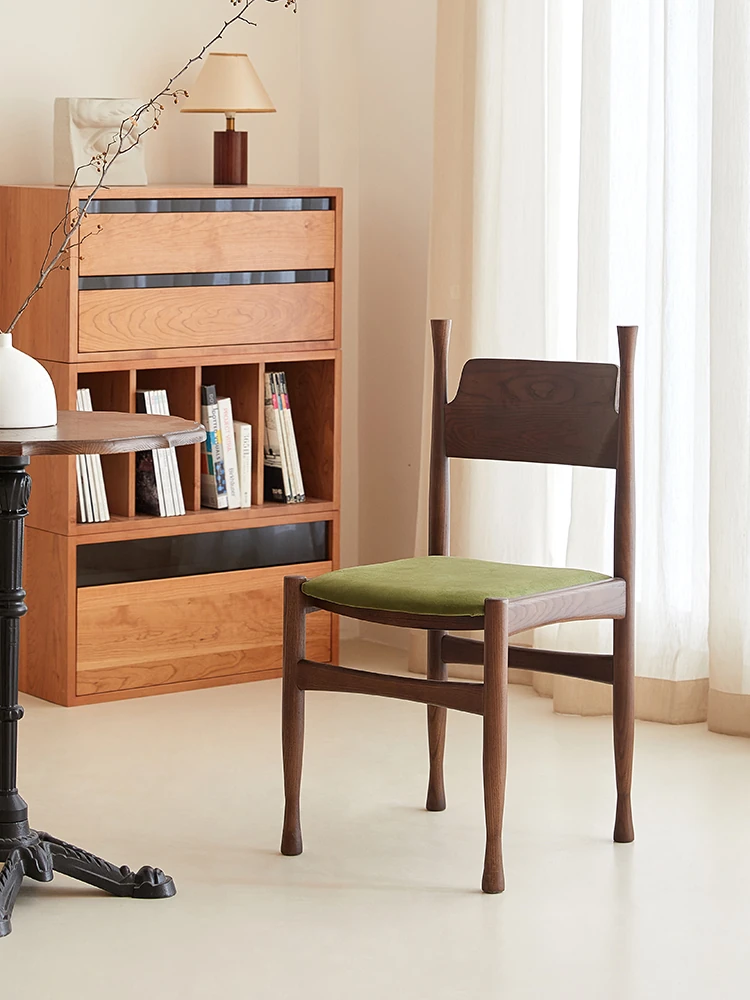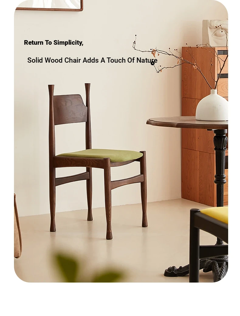 Vintage French-Inspired Solid Wood Dining Chair - Designer Style Lightweight Luxury Home Armchair for Living Room