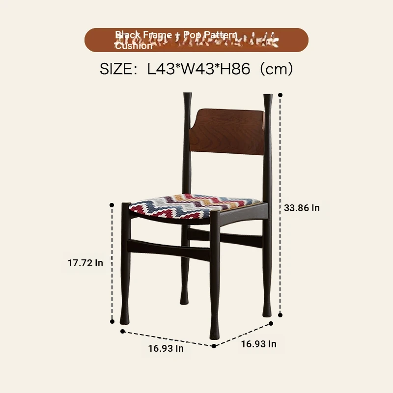 Walnut color frame + pop pattern cushion