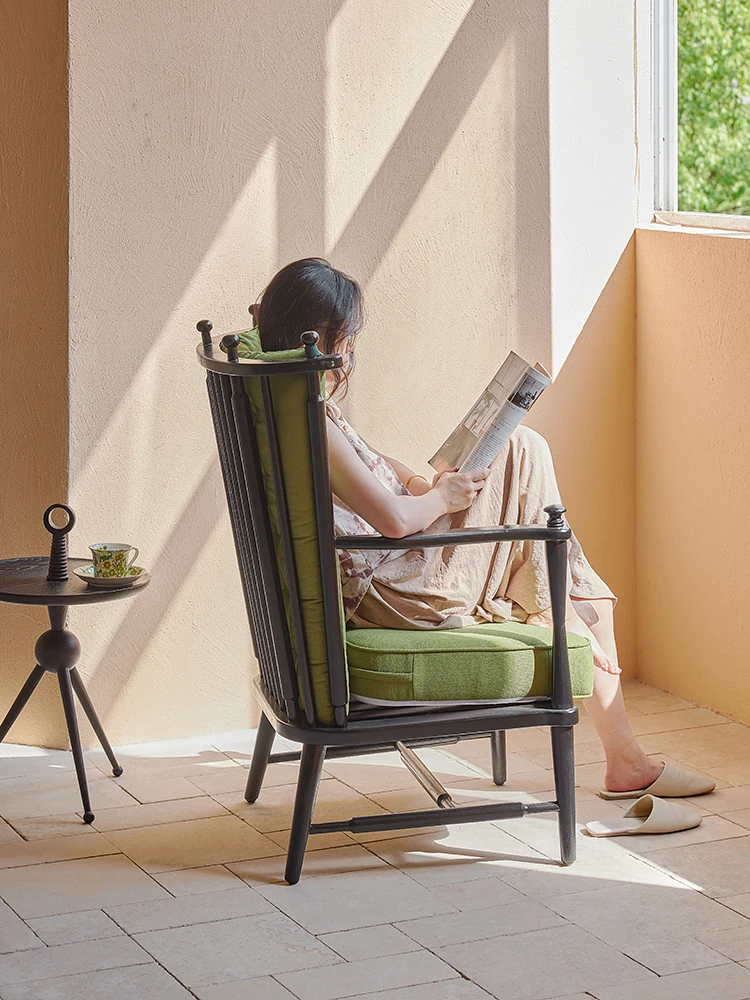 Vintage Wabi-Sabi Solid Wood Armchair - Designer Single Sofa for Living Room, Balcony, and Boutique Hotels - Perfect for Cozy Relaxation and Unique Aesthetic
