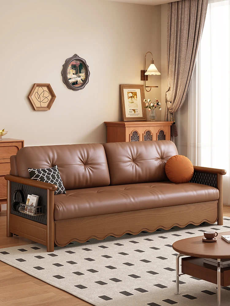Stylish Solid Wood Sofa Bed with Storage - Foldable & Convertible Design in Elegant Walnut Finish for Modern Living Rooms - 2025 New Arrival