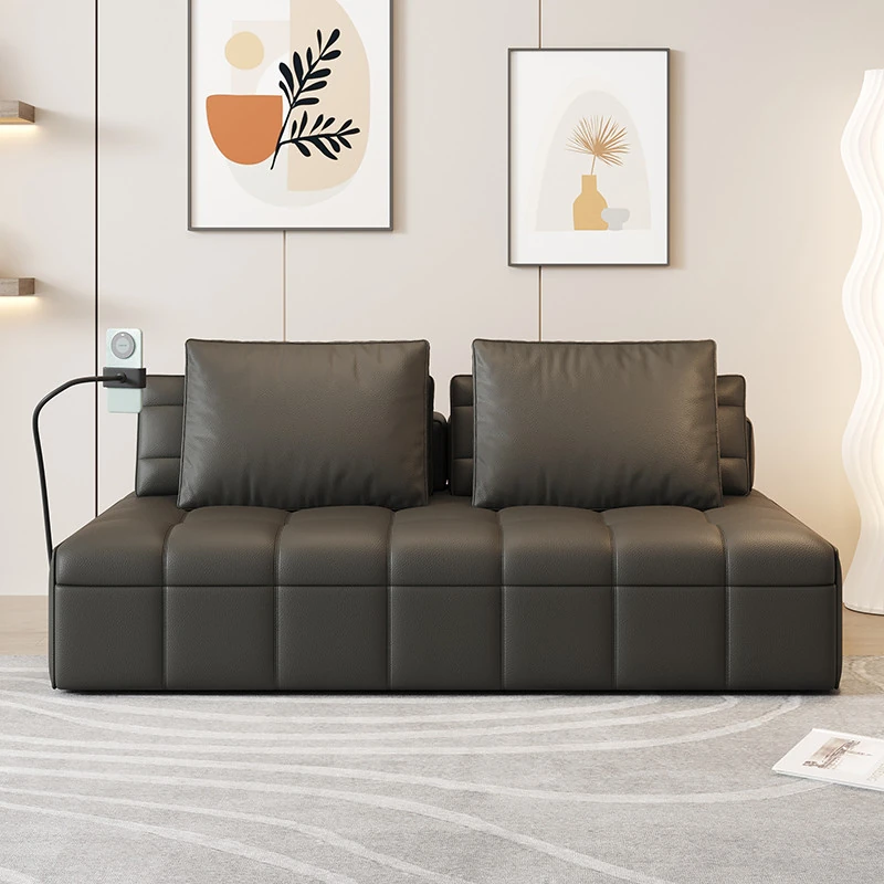 Adjustable Electric Sofa Bed - Premium Genuine Leather, Versatile 3-in-1 Design for Living Room, Perfect for Relaxing and Sleeping, Fits 4-Seat and 3-Seat Needs, Stylish and Functional!