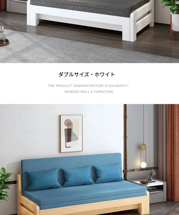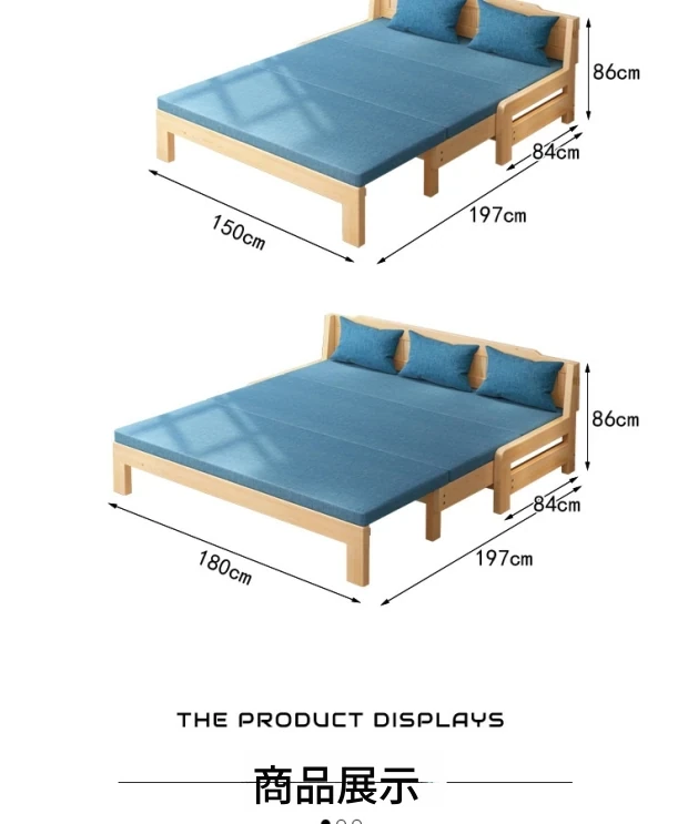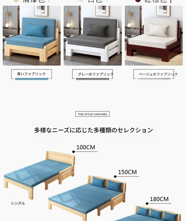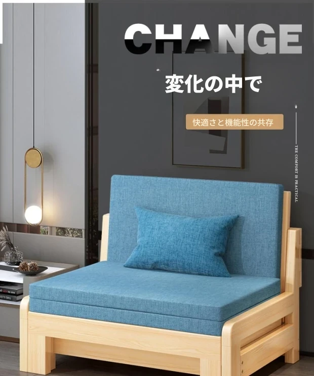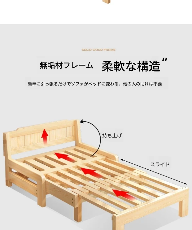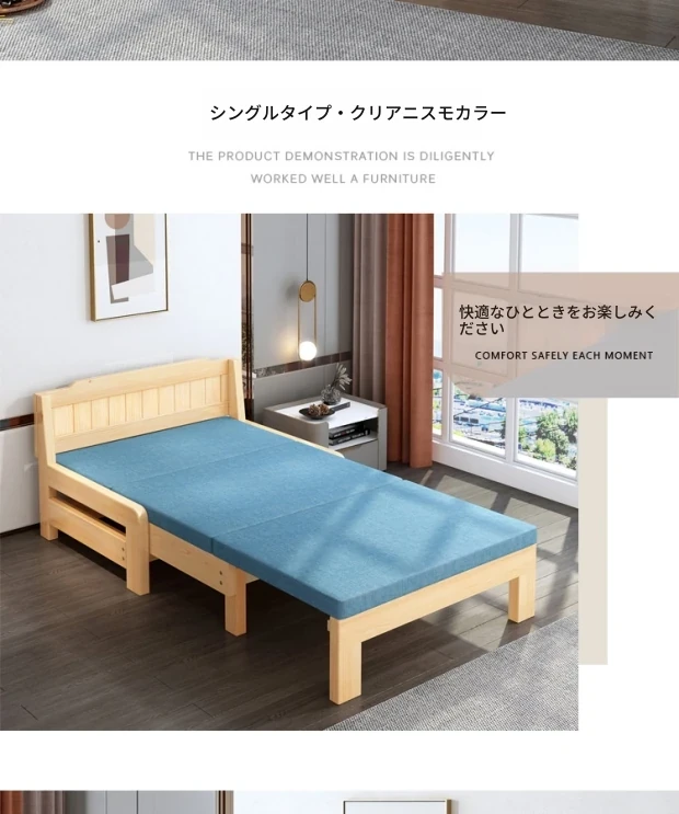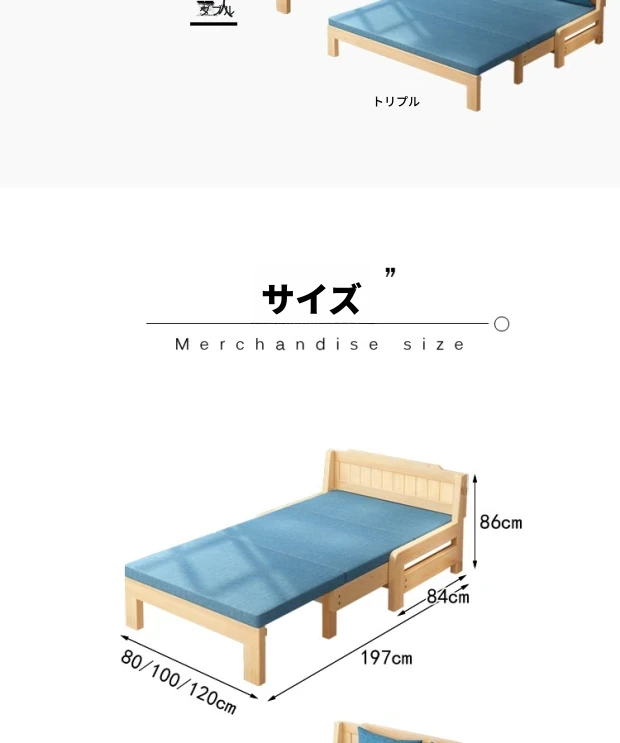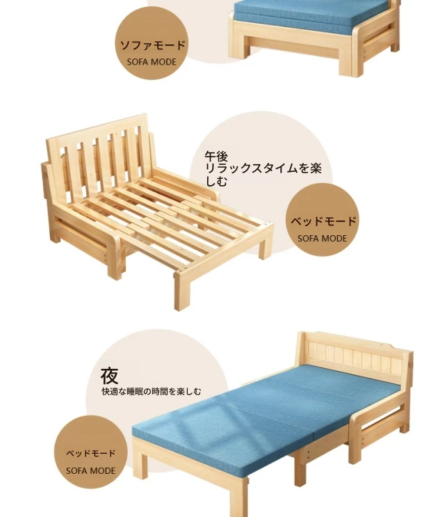 1.2メートル折りたたみソファベッド - 天然木製の多機能ベッド!リビング、バルコニー、書斎にぴったりな小型デザイン。1.2mから1.5mのダブルサイズまで対応。コンパクトでも快適な眠りを提供します!