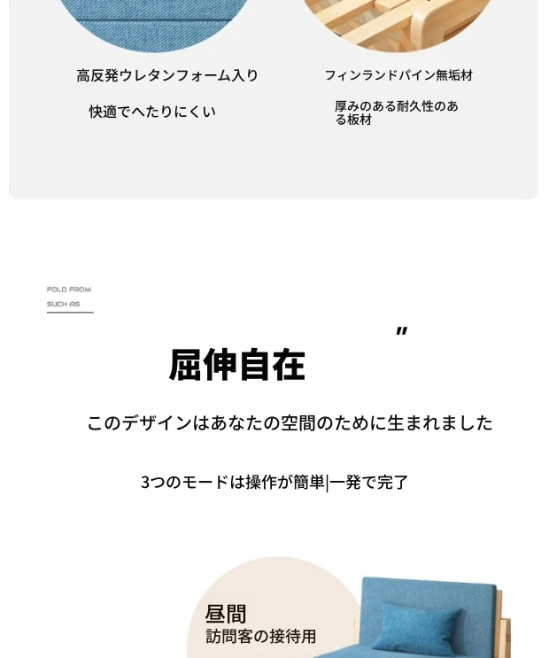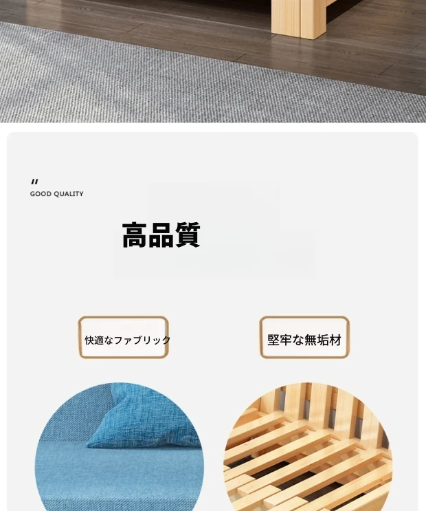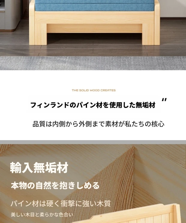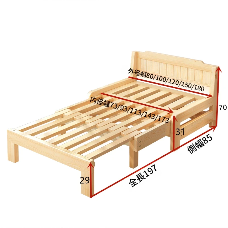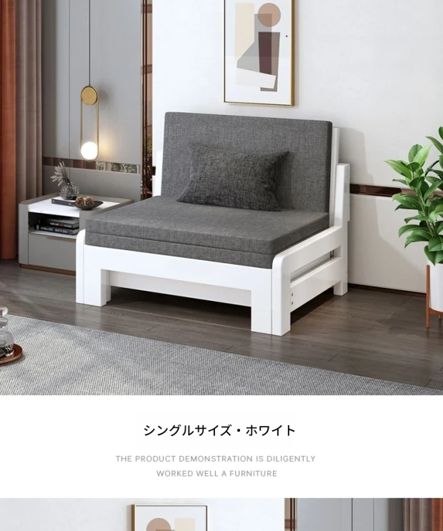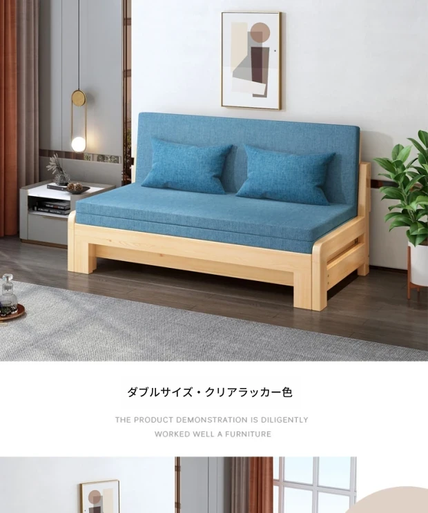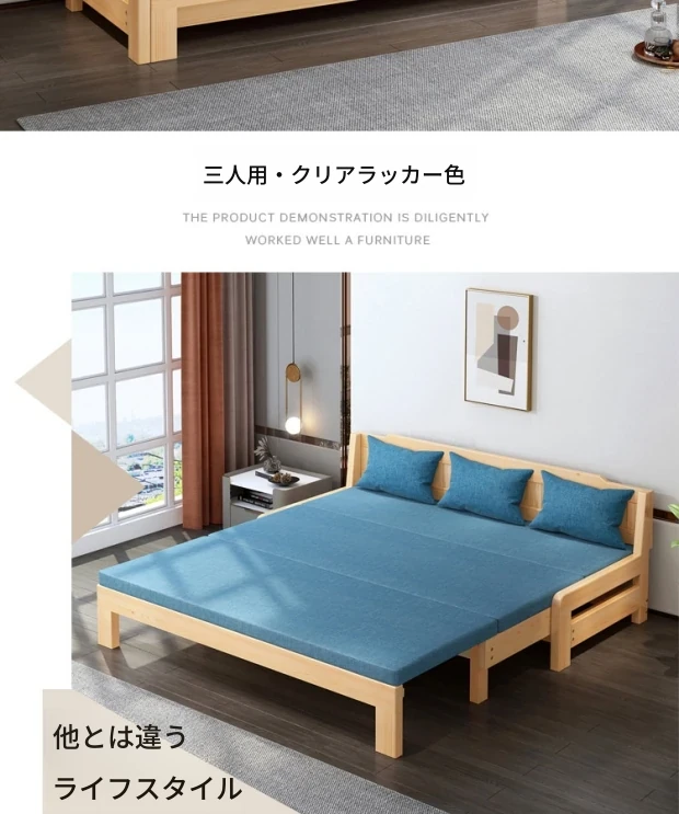 1.2メートル折りたたみソファベッド - 天然木製の多機能ベッド!リビング、バルコニー、書斎にぴったりな小型デザイン。1.2mから1.5mのダブルサイズまで対応。コンパクトでも快適な眠りを提供します!