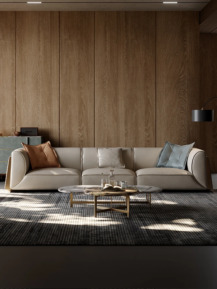 2023年最新イタリアンミニマリスト本革ソファ - デザイナーによるラグジュアリーな選択、別荘や広小型住宅に最適なストレートソファで、洗練された空間を演出します!