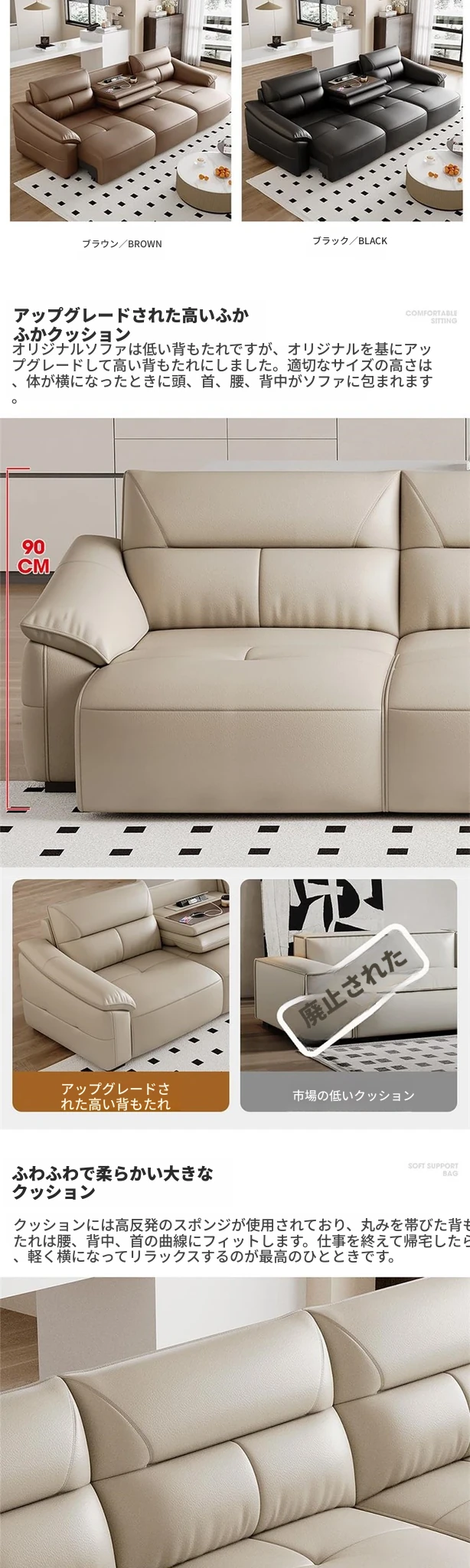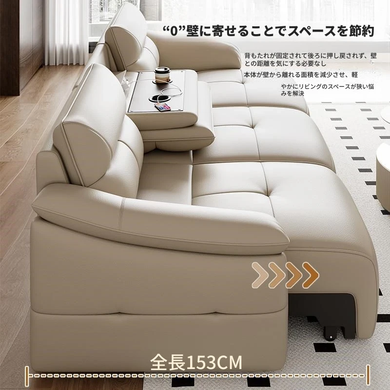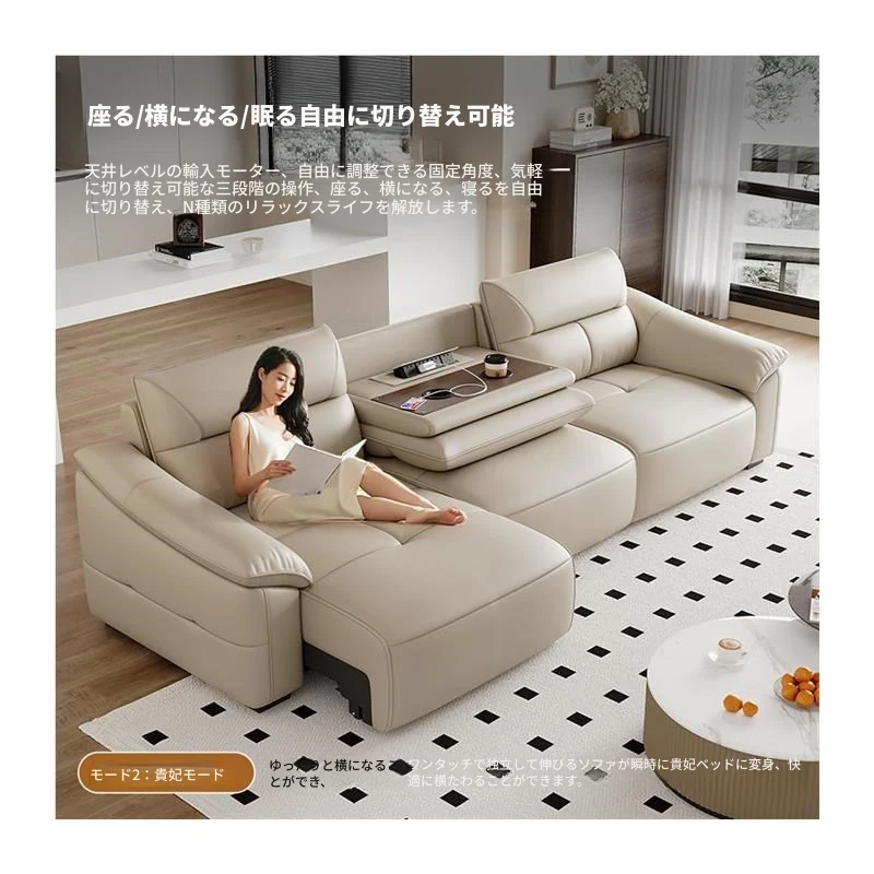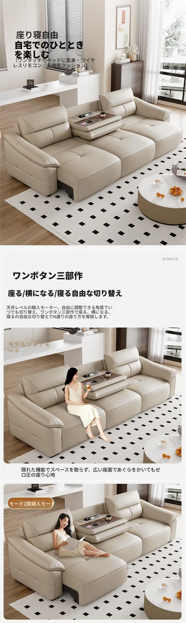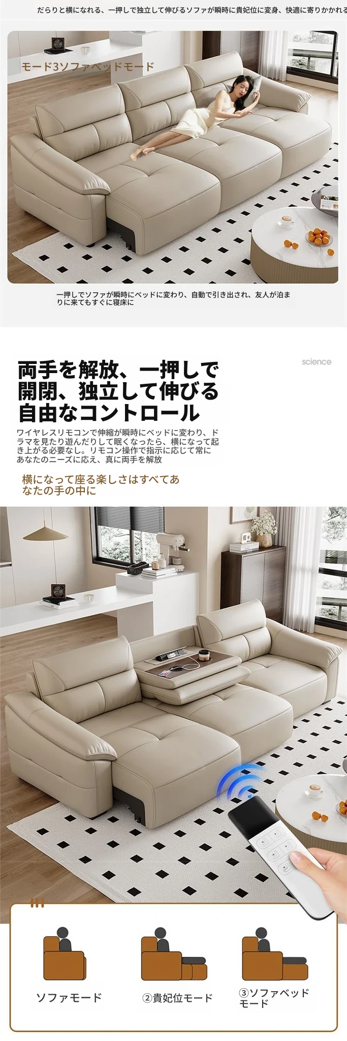 2024年新作!人気の本革ソファベッド - 小型リビングに最適な多機能折りたたみ式、スマート電動直排デザインで快適な睡眠を実現!おしゃれな空間を演出します。