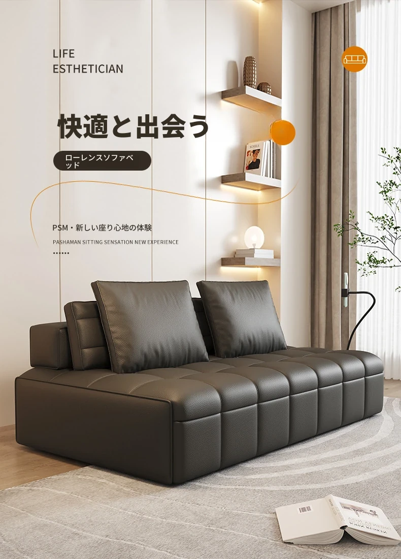 2025年最新モデル ローレンス ソファベッド 小型リビング向け スリムデザイン 多機能 本革ソファ 一体型で伸縮自在!快適なスペースを実現し、スタイリッシュなインテリアを演出します!