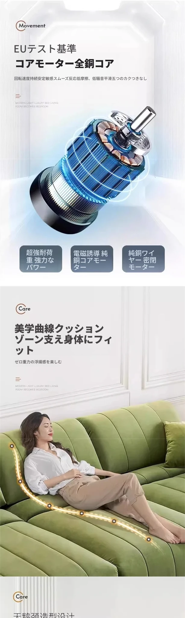 調整可能な八爪魚電動ソファ!小型リビングに最適なクリームカラーの布製、スマートで多機能なソファベッド。快適さとスタイルを両立した夢の空間を実現します!