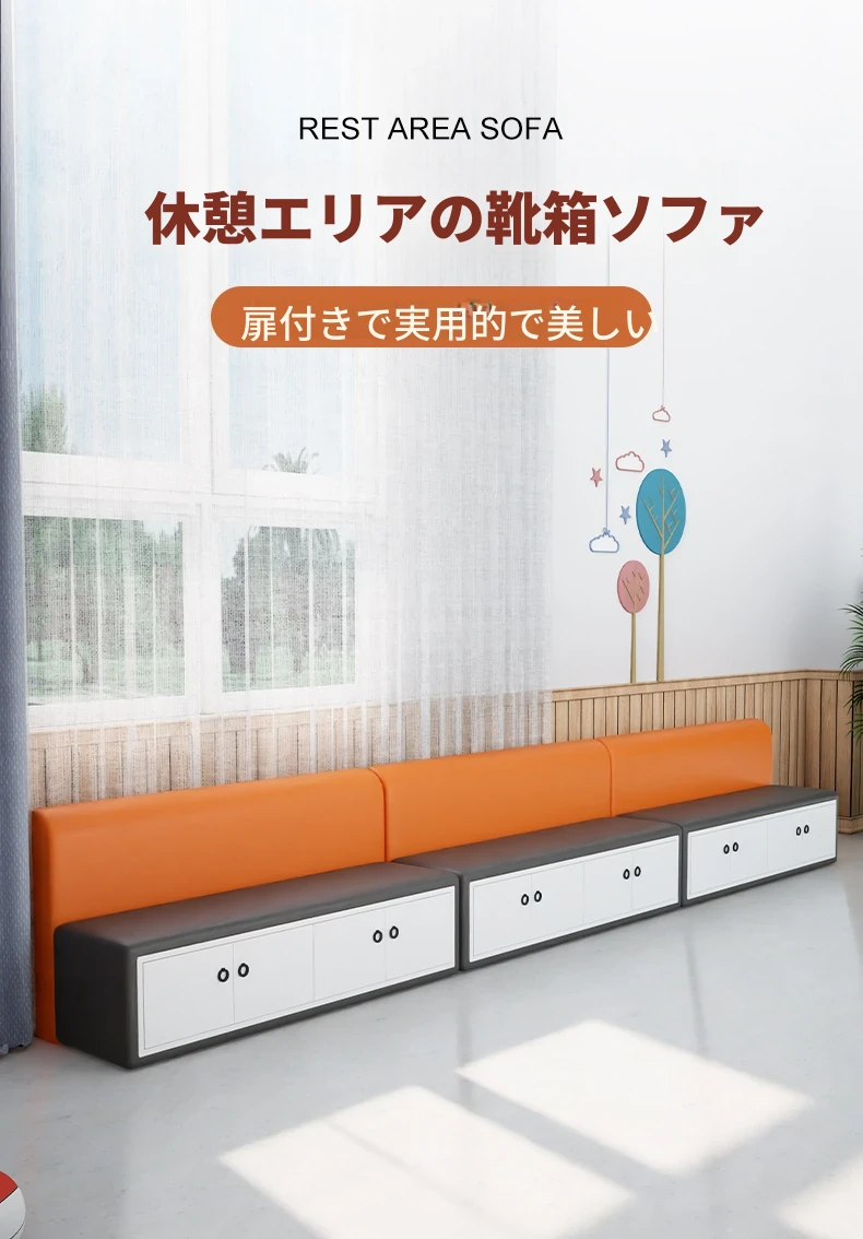 子供用ソフトパッケージ ドア付きシューズキャビネット 長方形コンビネーションソファ 待機・休憩エリアの収納 海洋ボールフェンス 靴を履き替えるためのベンチで楽しく安全な空間を提供!