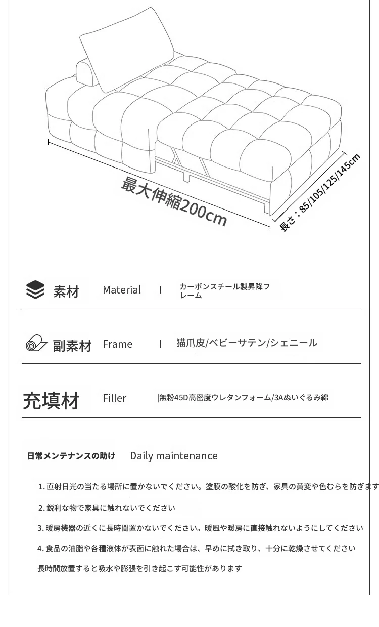 幅105cm【耐磨き猫爪皮+45D8cmスポンジ】
