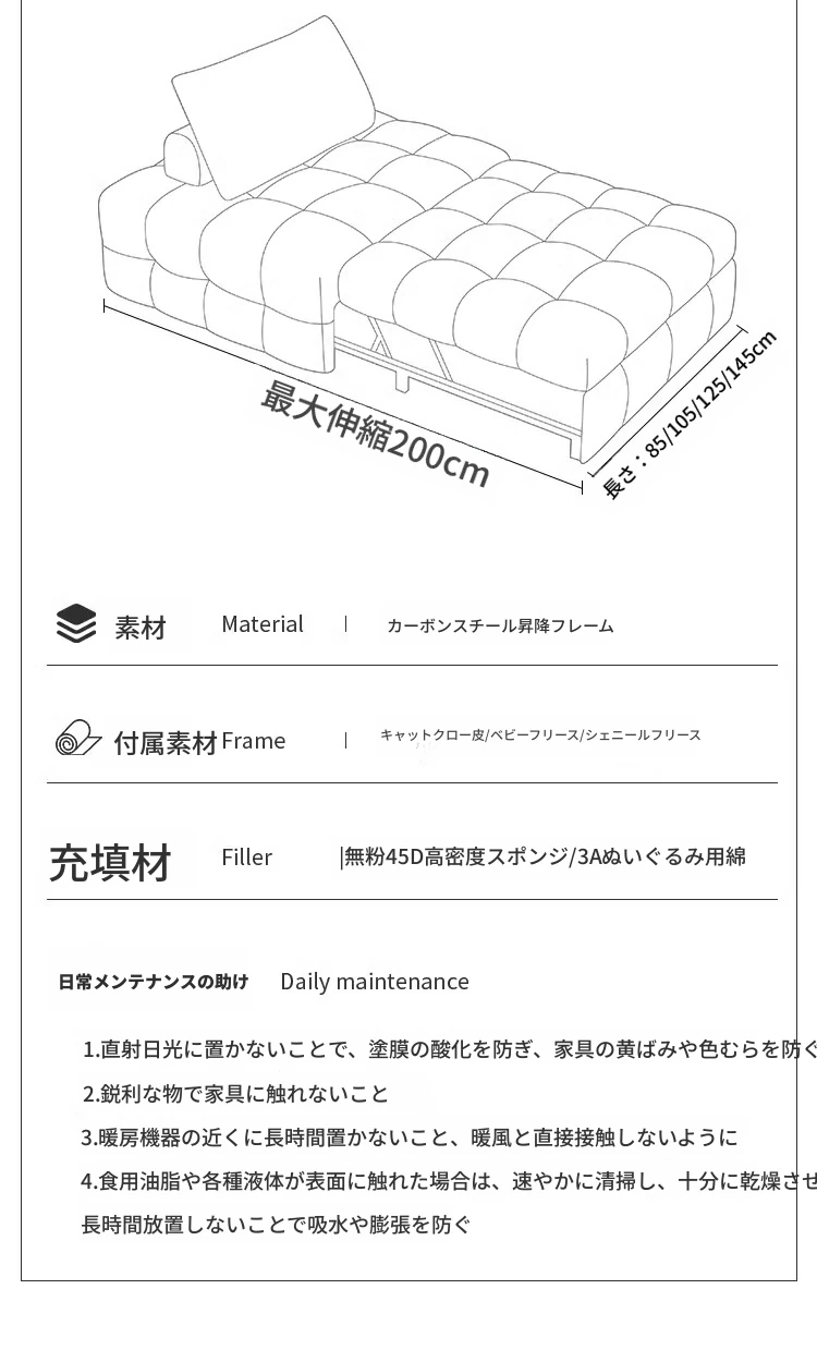 幅105cmソファベッド 展開200cm【猫の爪防止皮】