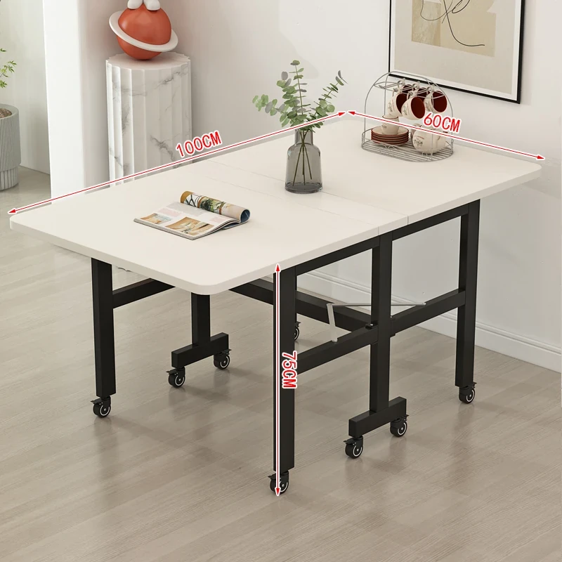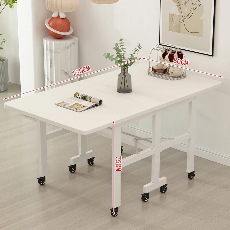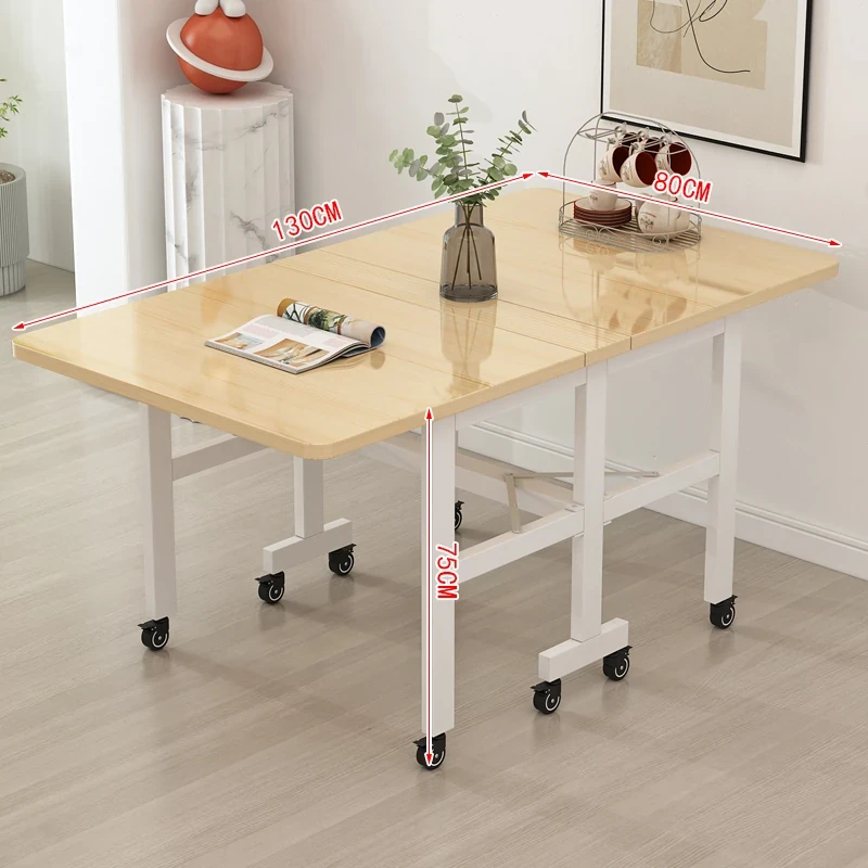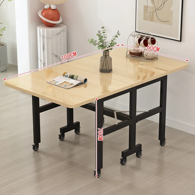 超薄多機能!純正無垢材折りたたみダイニングテーブル - 小型家庭向け、移動可能で伸縮自在な長方形テーブル、食事に最適なコンパクトサイズ!