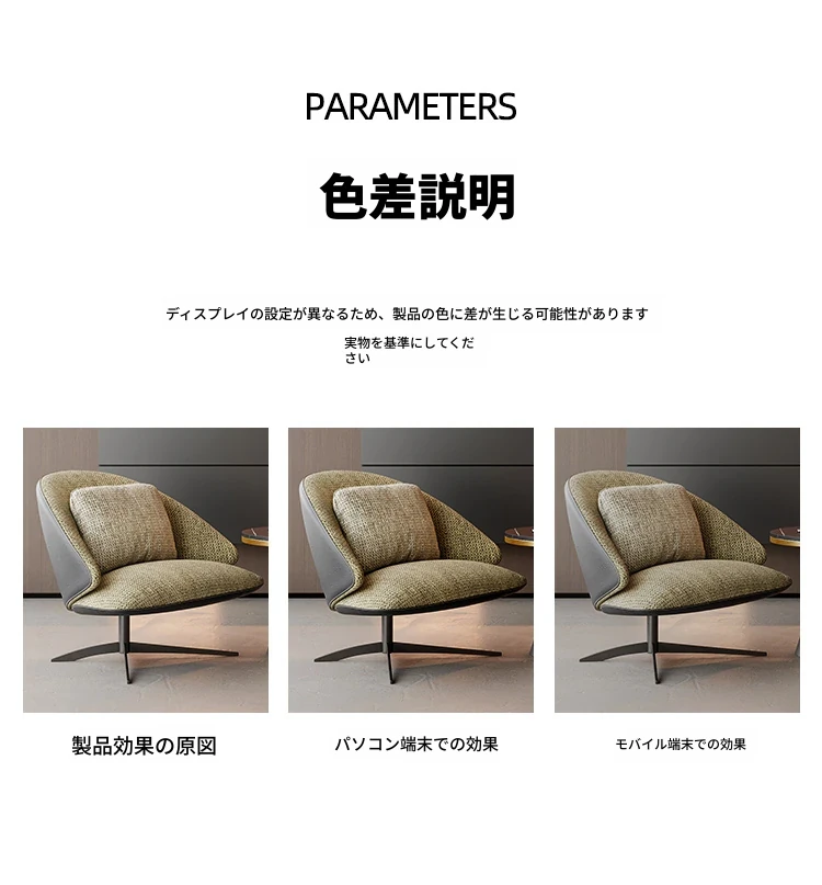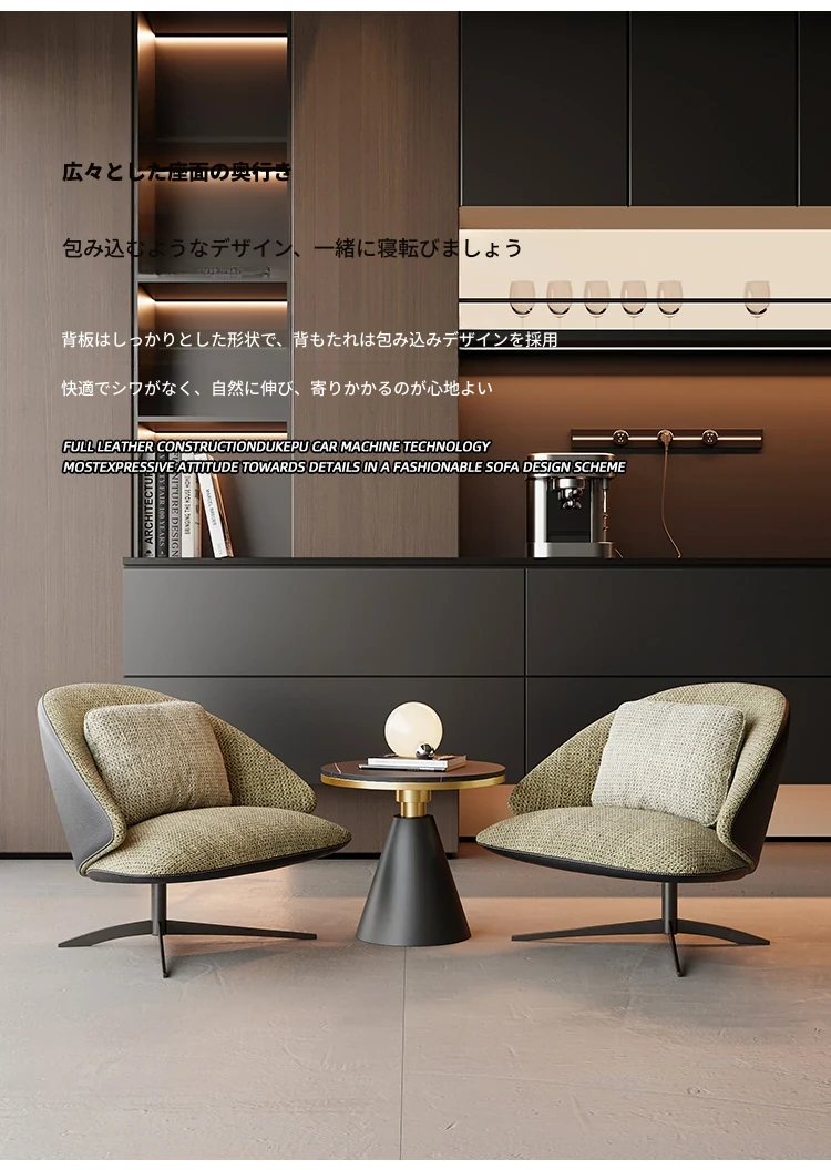 談話用椅子-カーキブラウン/ブラック【コットンリネン+ナッパレザー】