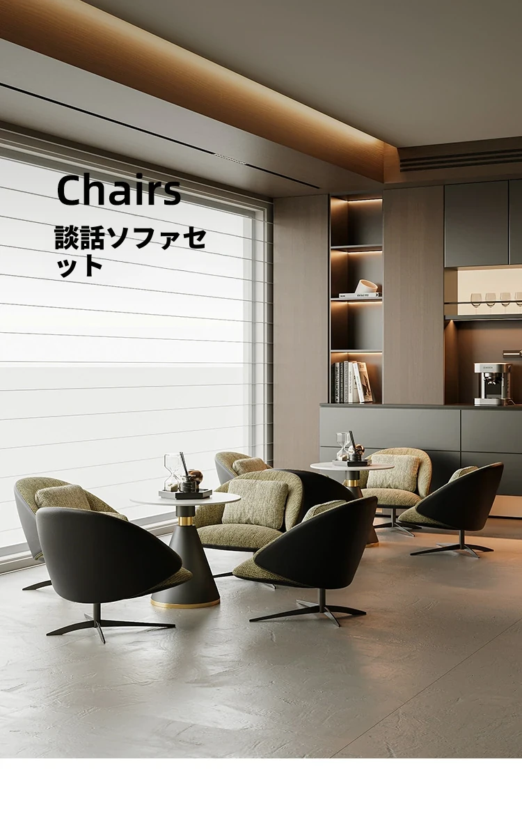 イタリアンエレガンスのビジネス談話テーブル&チェアセット - カフェ、ホテル、クラブ、展示会、販売所に最適な受け付け・会客用家具!洗練されたデザインで、機能性とスタイルを兼ね備えた一品。