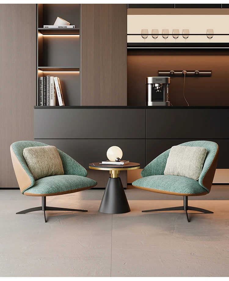 談話用椅子-ミントブルー/オレンジ【コットンリネン+ナッパレザー】