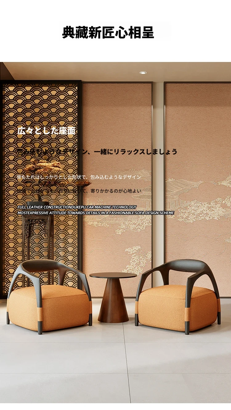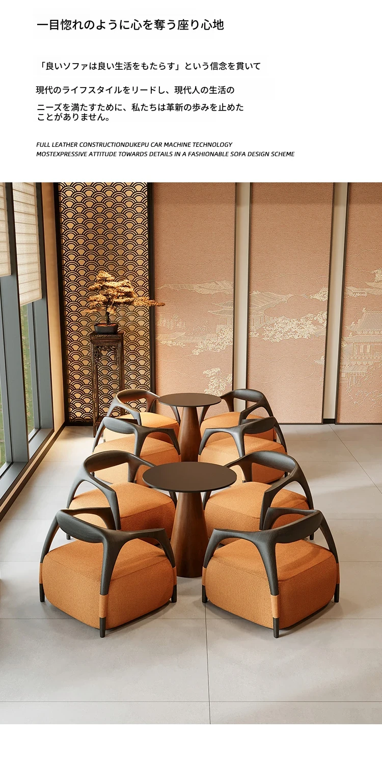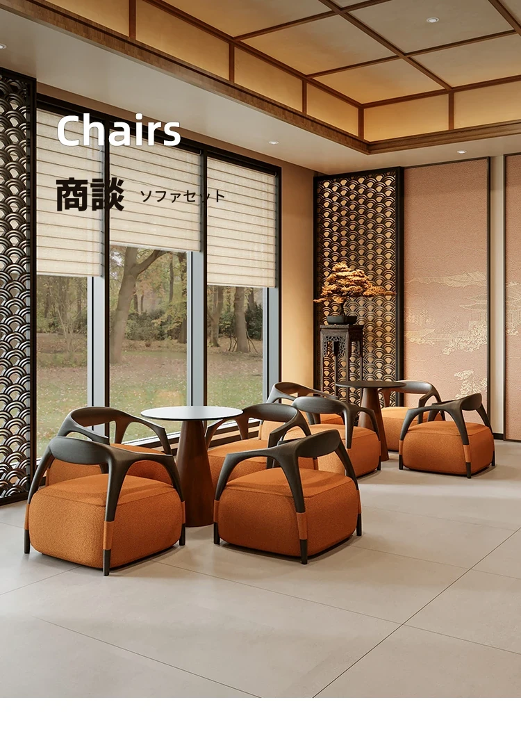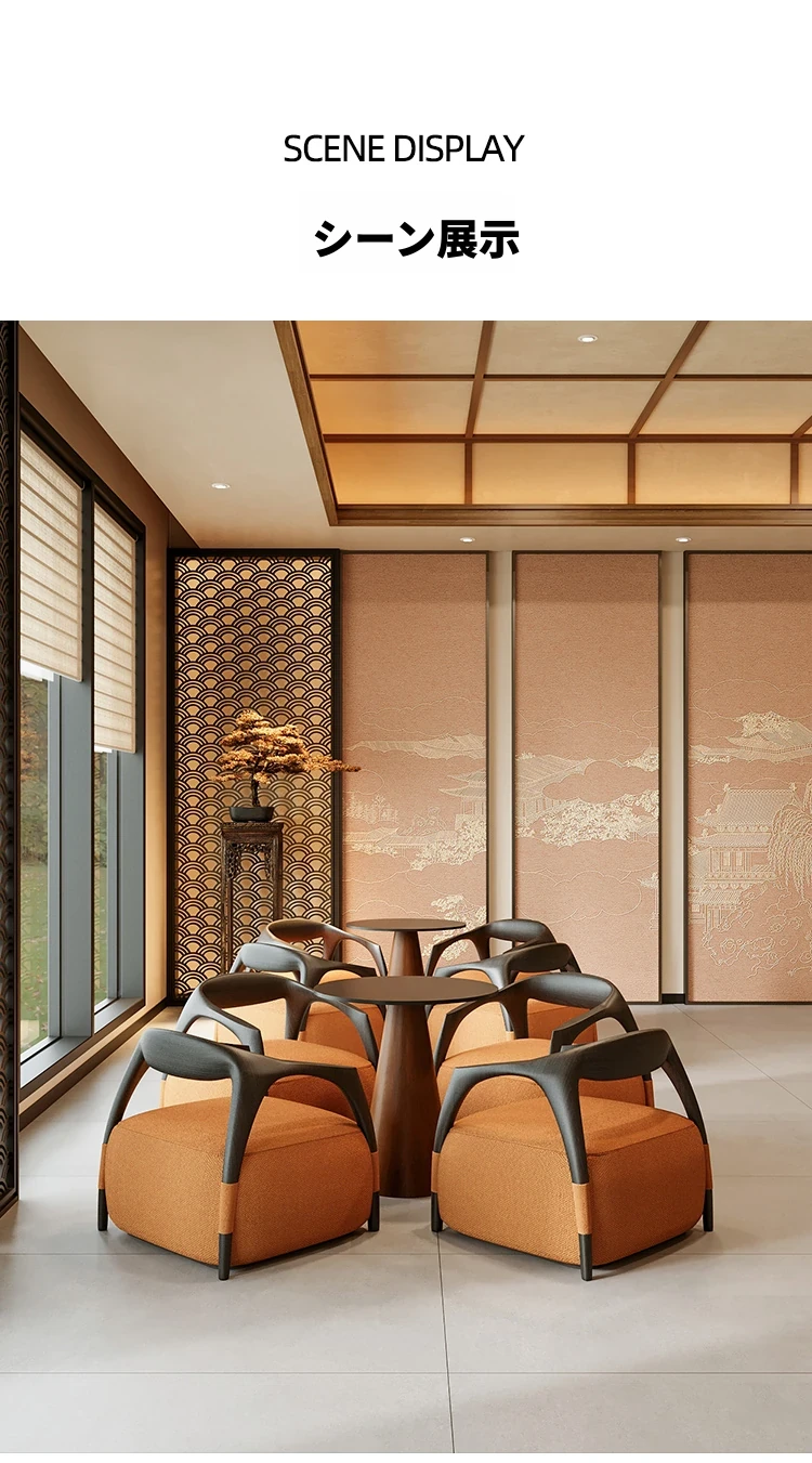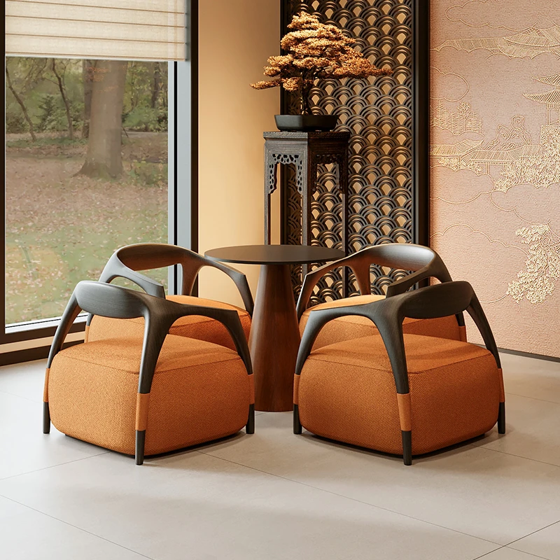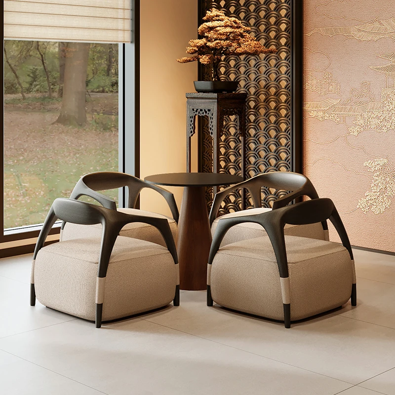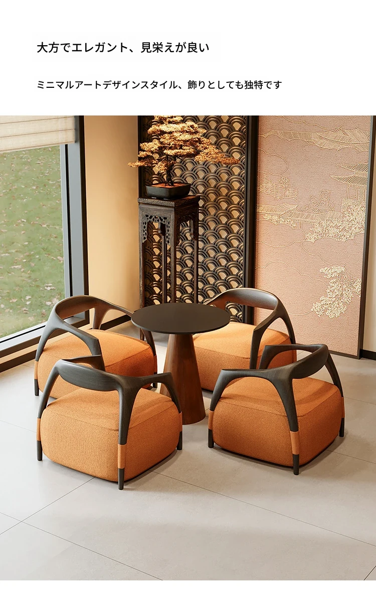 新中式の無垢材製談話テーブルセット - 茶室・ホテル・クラブ・展示会・販売所の休憩エリアに最適な接客テーブルと椅子!高級感あふれるデザインで、心地よいひとときを演出します。