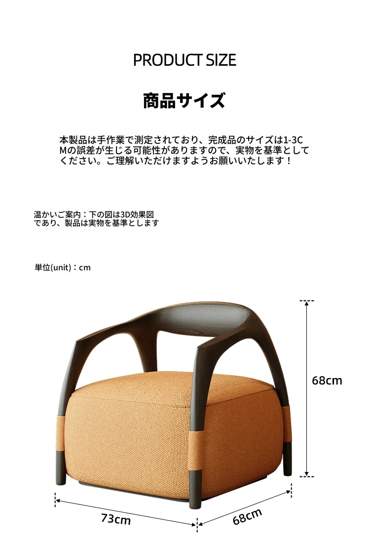 杏色ソファチェア【無垢材+コットンリネン】