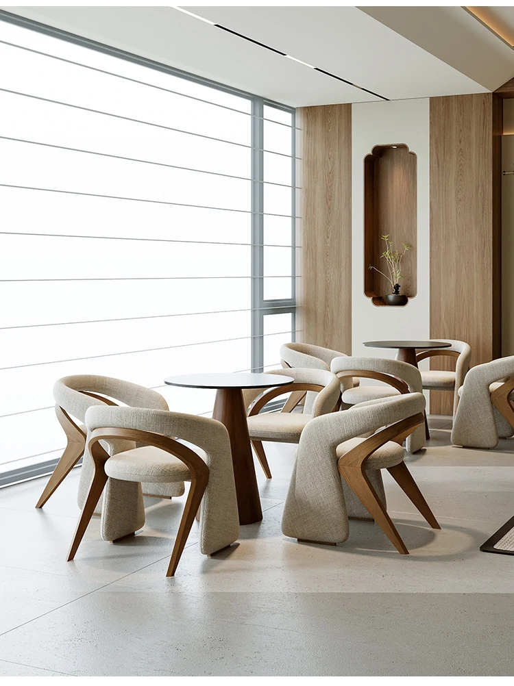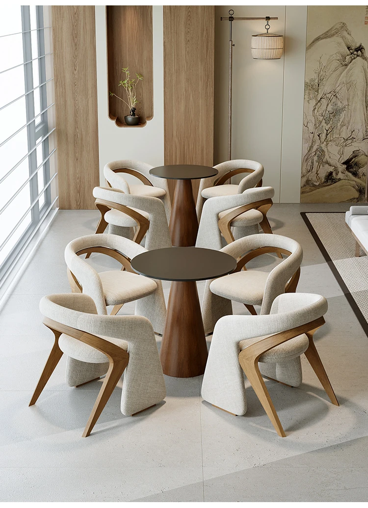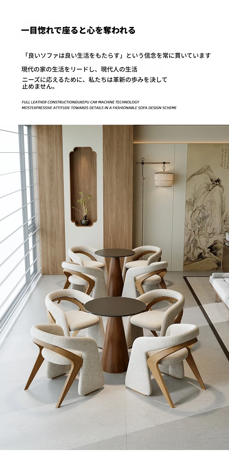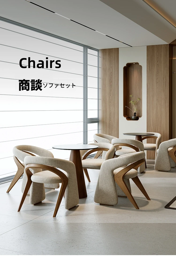 無垢材会議椅子【通気性のあるコットンリネン生地】