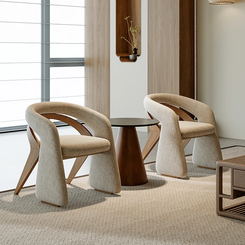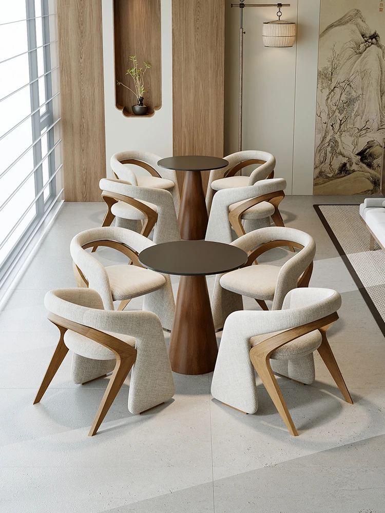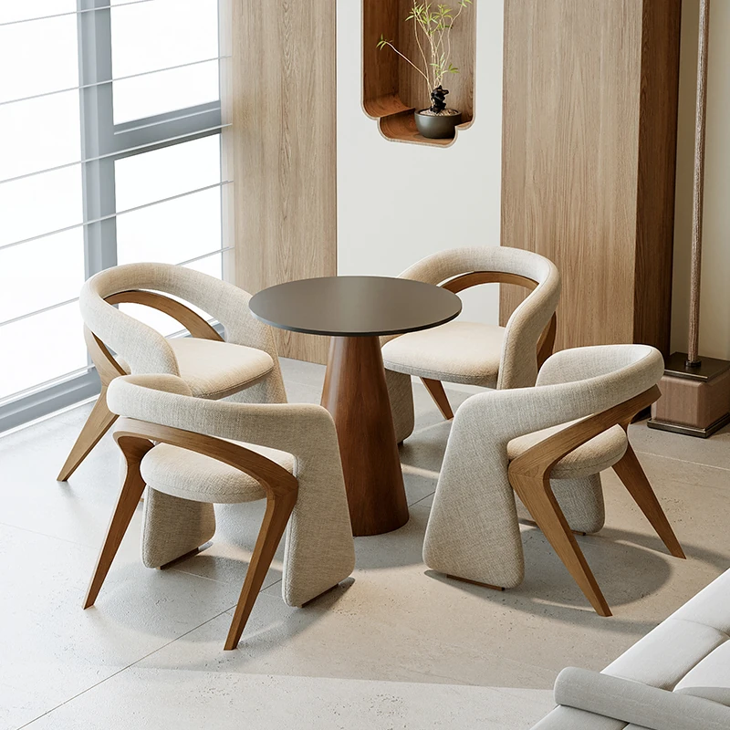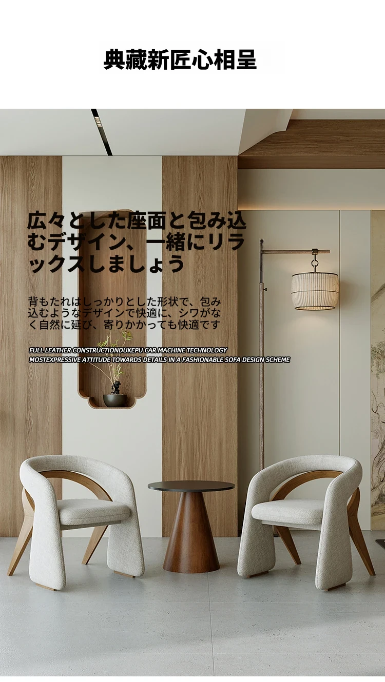 無垢材会議椅子【通気性のあるコットンリネン生地】