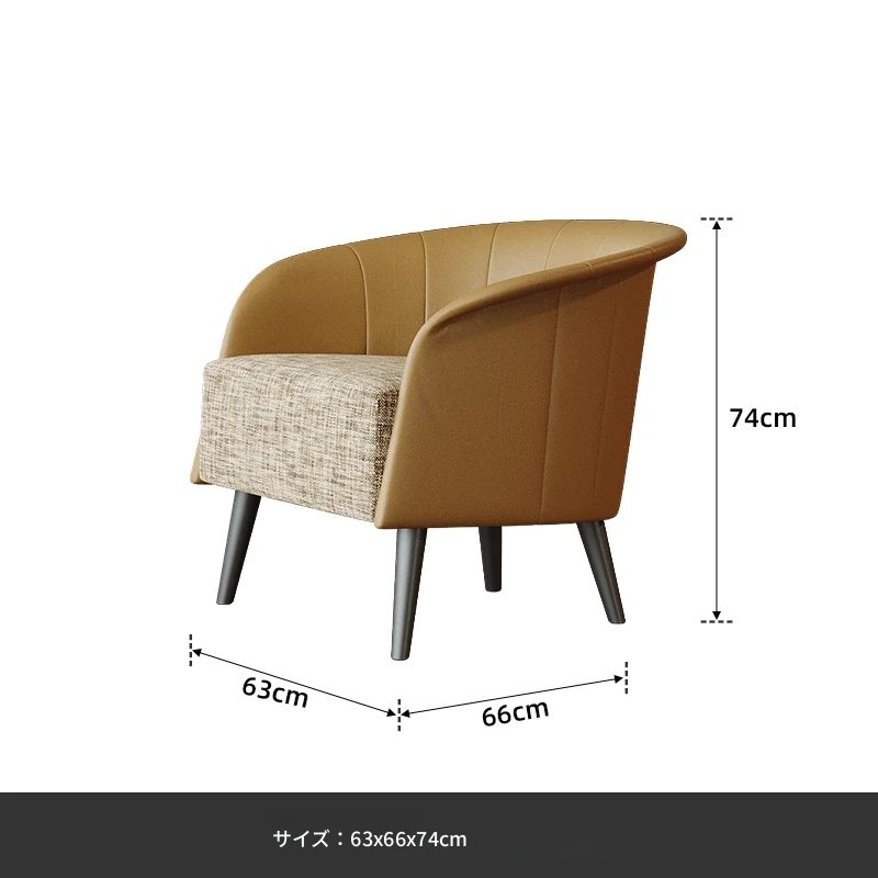オレンジ色のソファ椅子【ナパ革+コットンリネン】