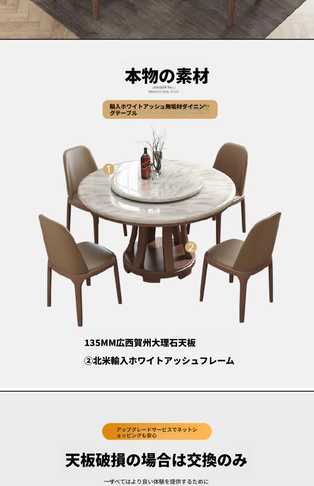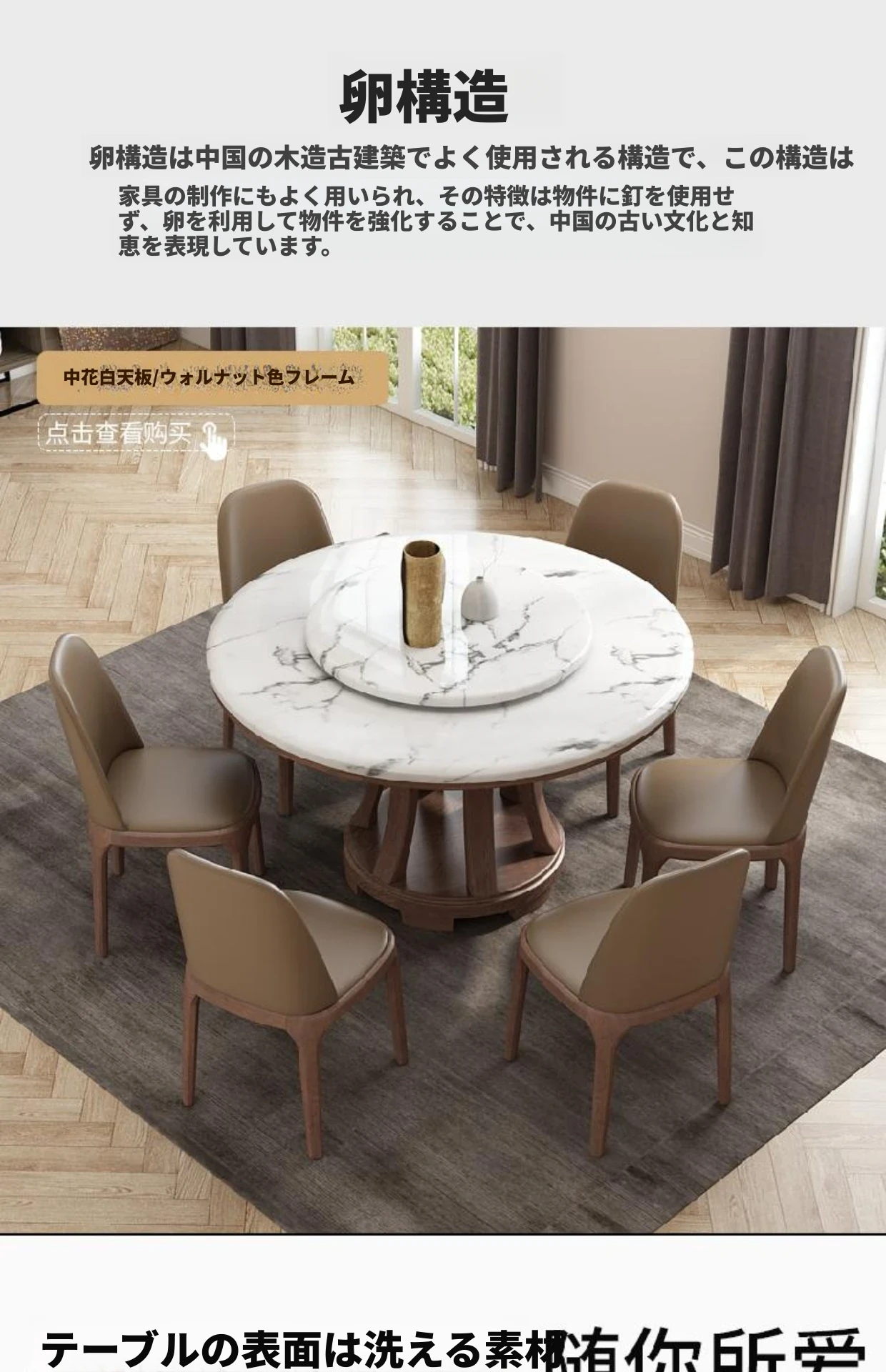 【香港送料無料】モダンでシンプルな大理石ダイニングテーブルセット!北欧スタイルの実木製円形テーブル、家族での食事にぴったり。快適で洗練された食卓を実現しましょう!