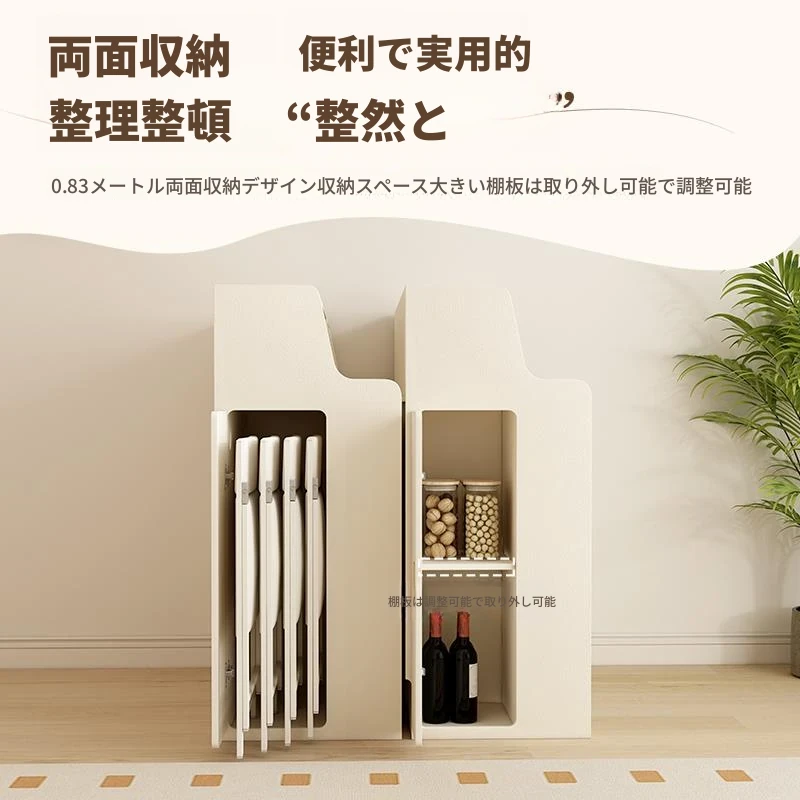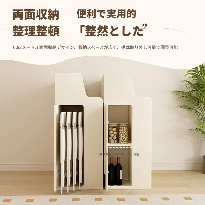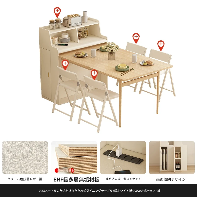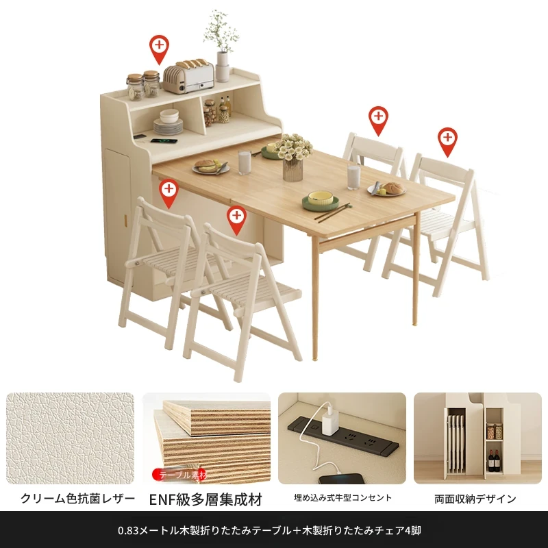 0.83メートル 無垢材折りたたみダイニングテーブル+暖白色折りたたみダイニングチェア*4