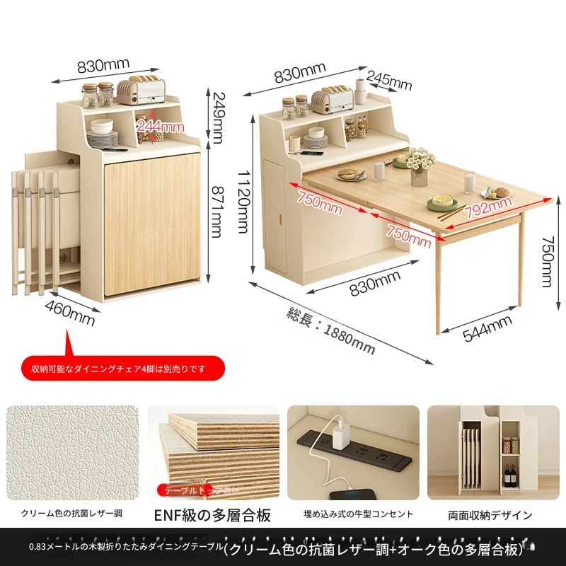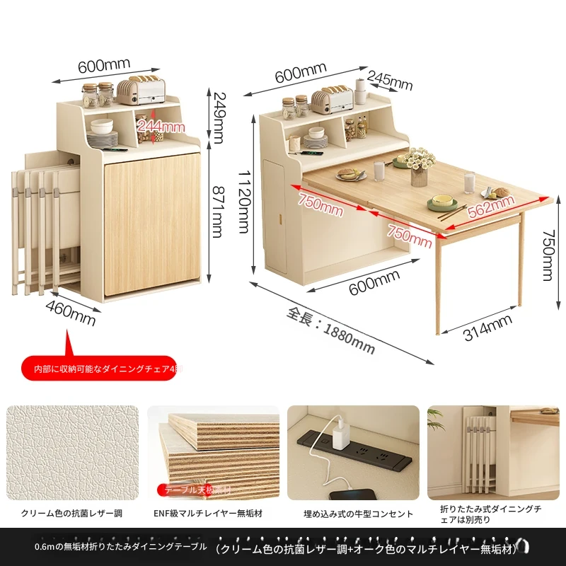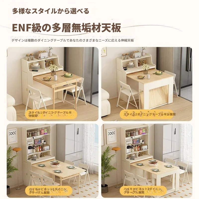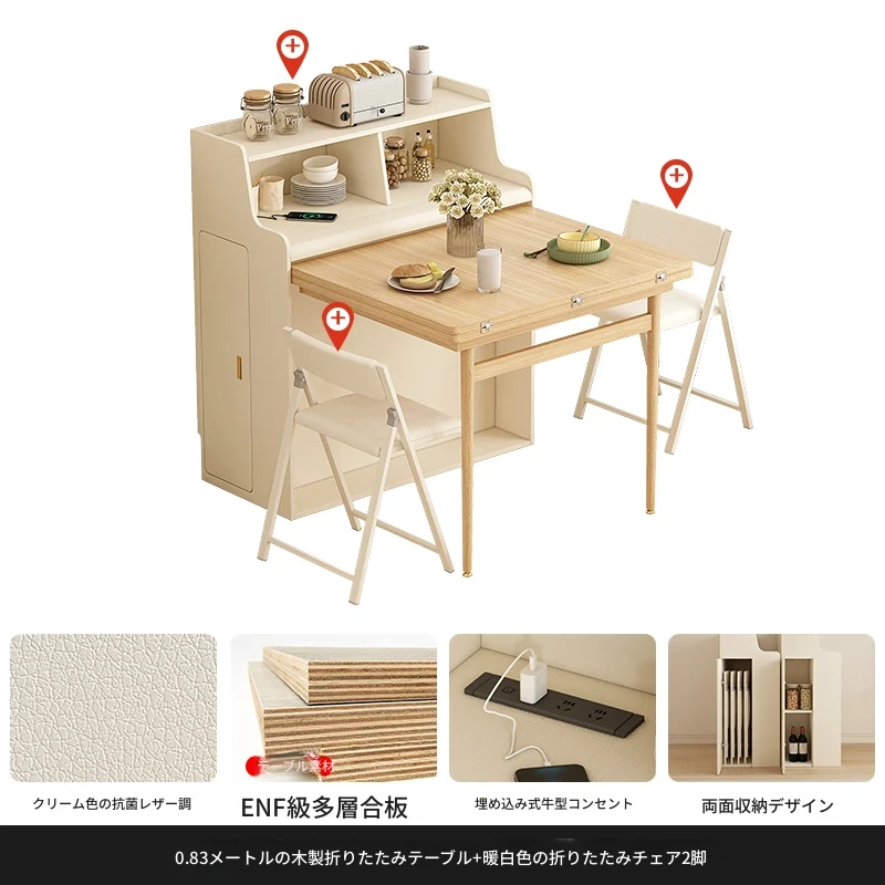 【香港送料無料】実木製折りたたみダイニングテーブル|壁掛け可能なコンパクトデザイン|小さな家に最適な収納&多機能タイプ!
