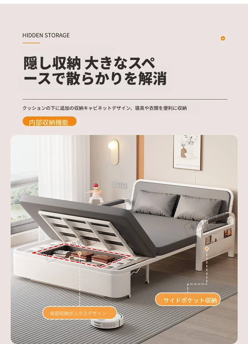 【香港送料無料】2024年新作!折りたたみソファベッド 小型リビング・バルコニーに最適!人気のシングルプルダウン式、スペースを節約しながら快適な睡眠を提供!