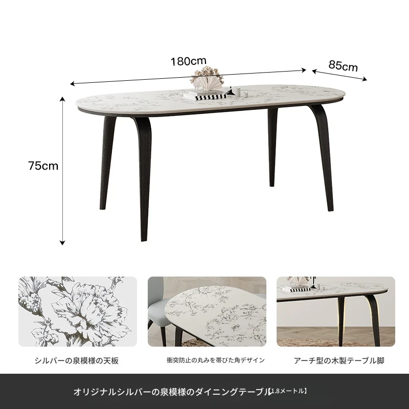 原版シルバー山泉模様ダイニングテーブル【1.8メートル+4脚の椅子】