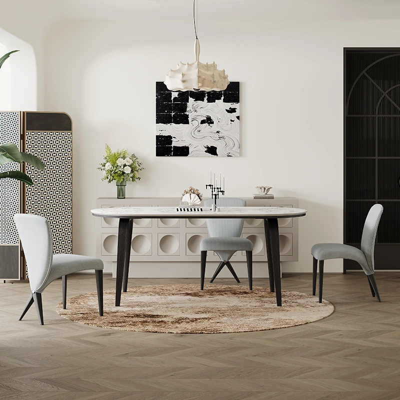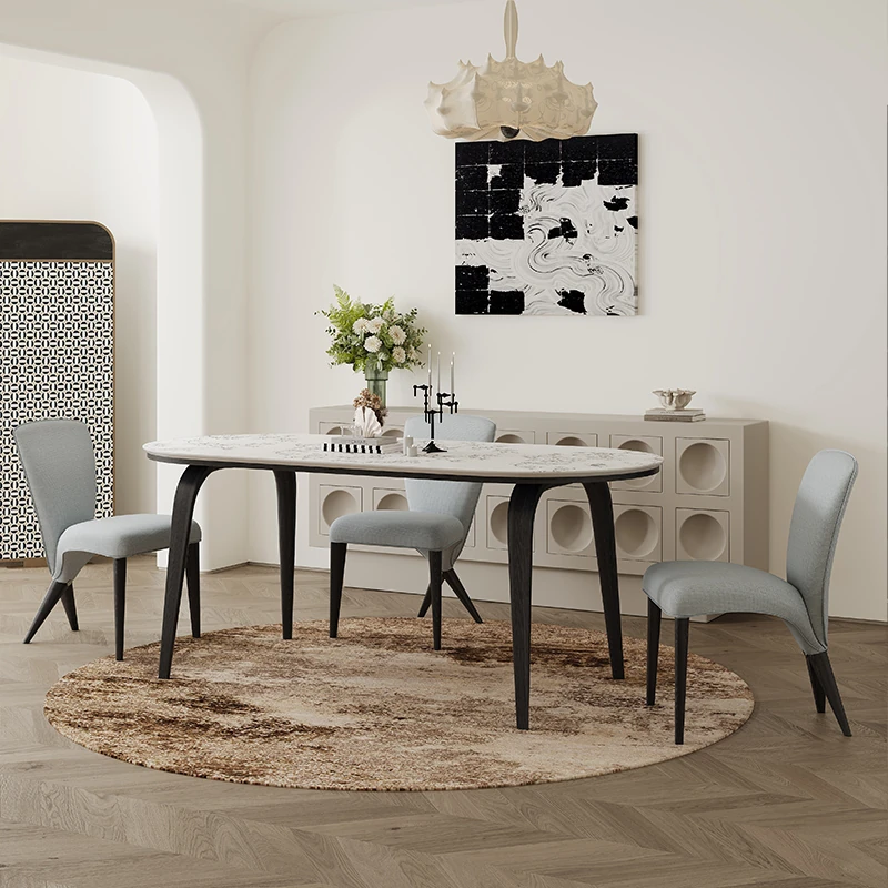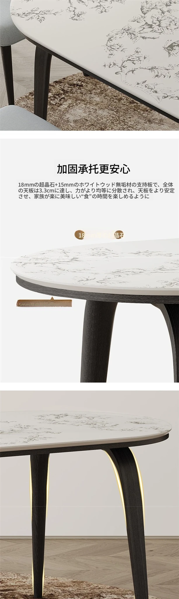 IFJE 全実木フランス風ブラックレトロイタリアンミニマル天然LUX石板長方形侘び寂びスタイルダイニングテーブル - 上質なデザインで食卓を彩る、洗練された雰囲気を演出します!