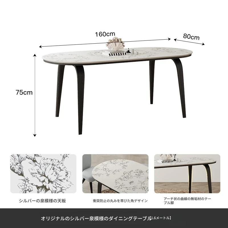 原版シルバー山泉模様ダイニングテーブル【1.6メートル】
