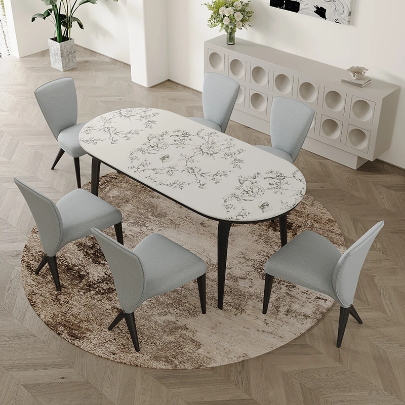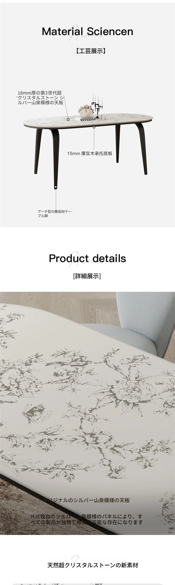 原版シルバー山泉模様ダイニングテーブル【1.8メートル+6脚の椅子】
