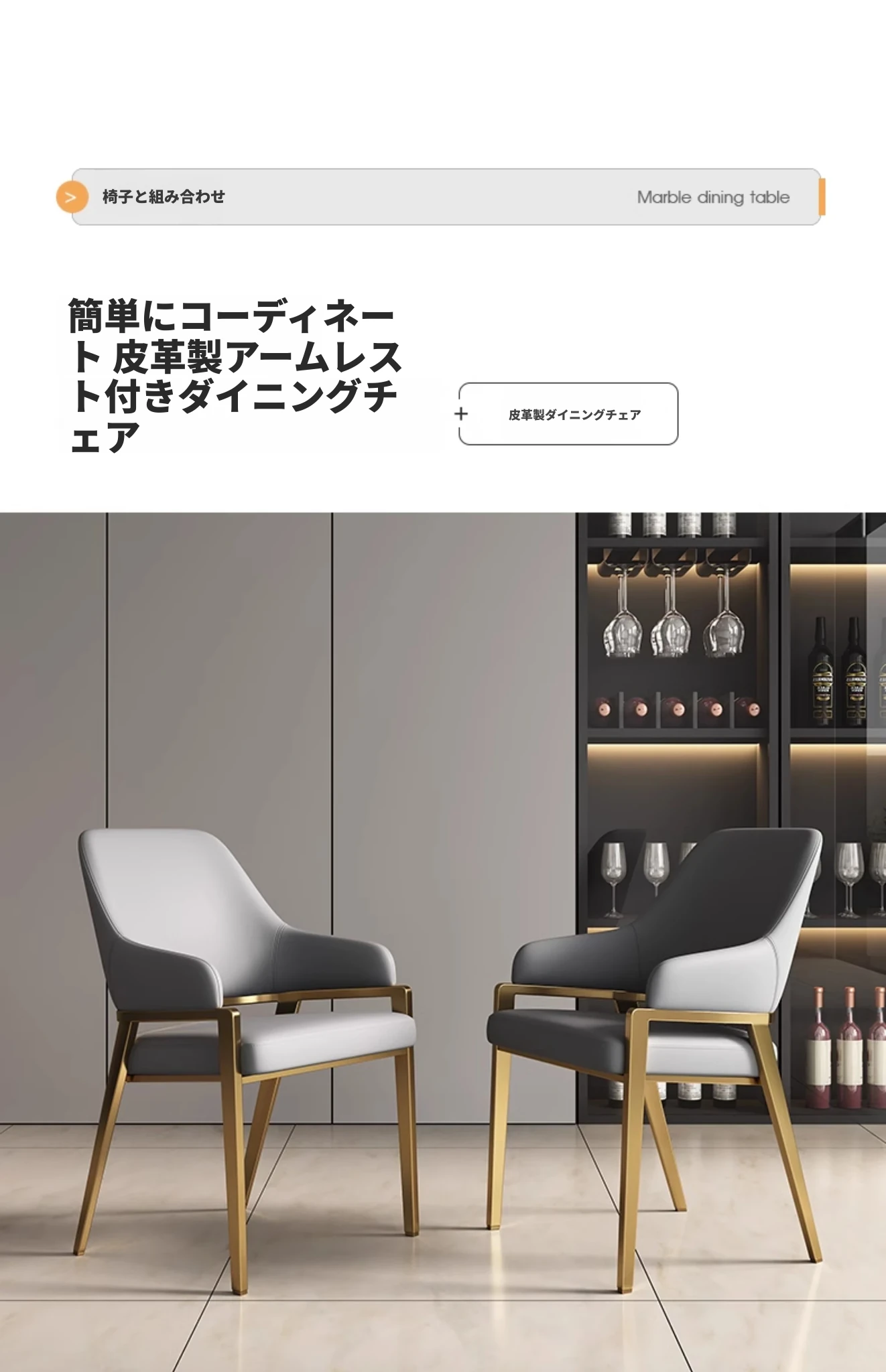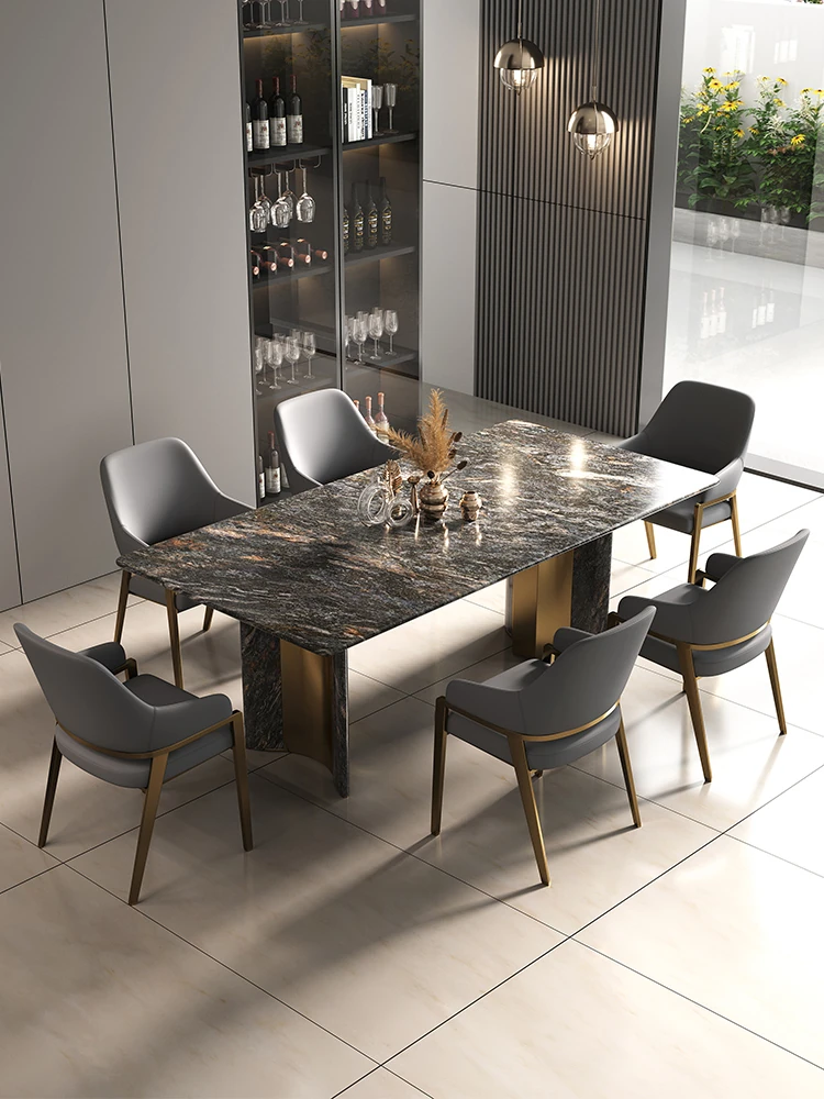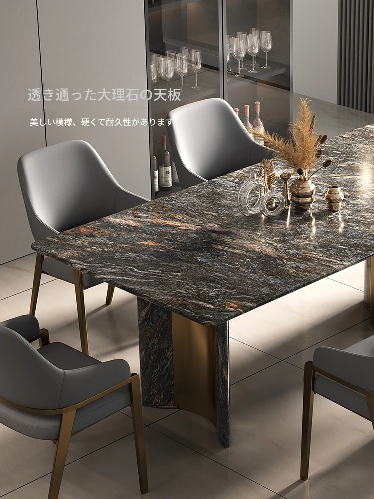 輸入品の大理石ダイニングテーブル&チェアセット - イタリアンラグジュアリー、モダンシンプルなデザイン、長方形の高級別荘用、家庭での食事に最適。