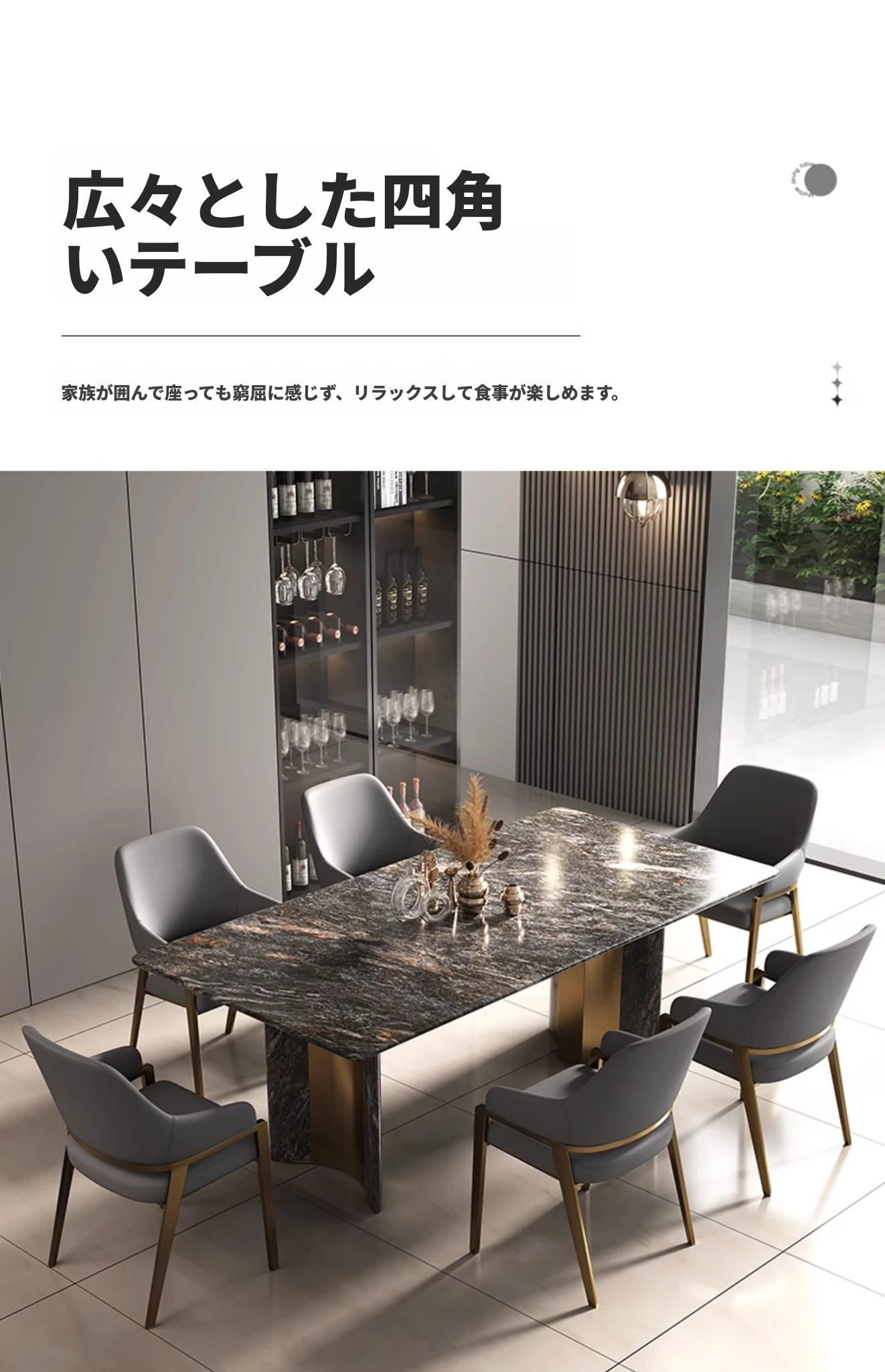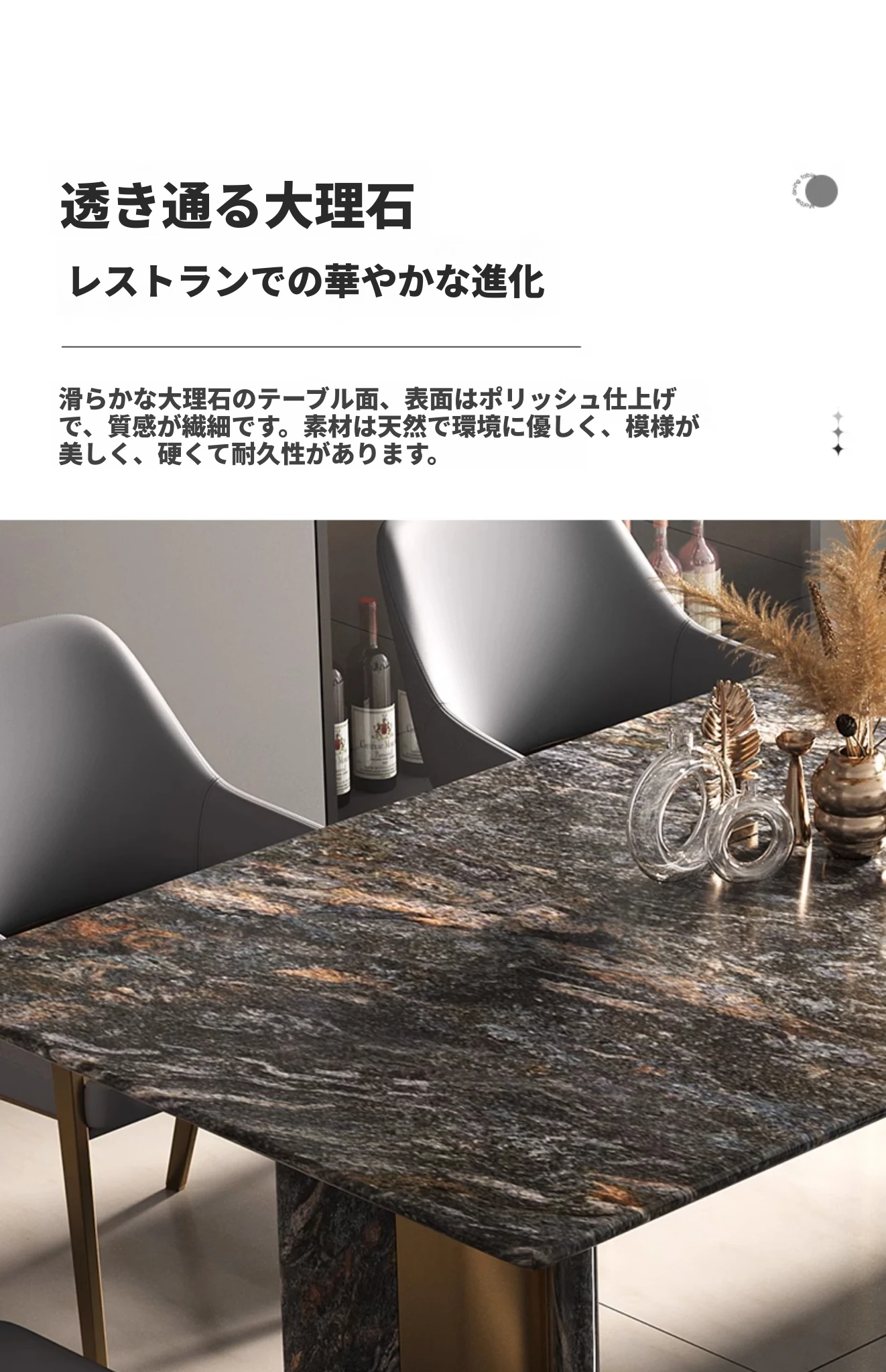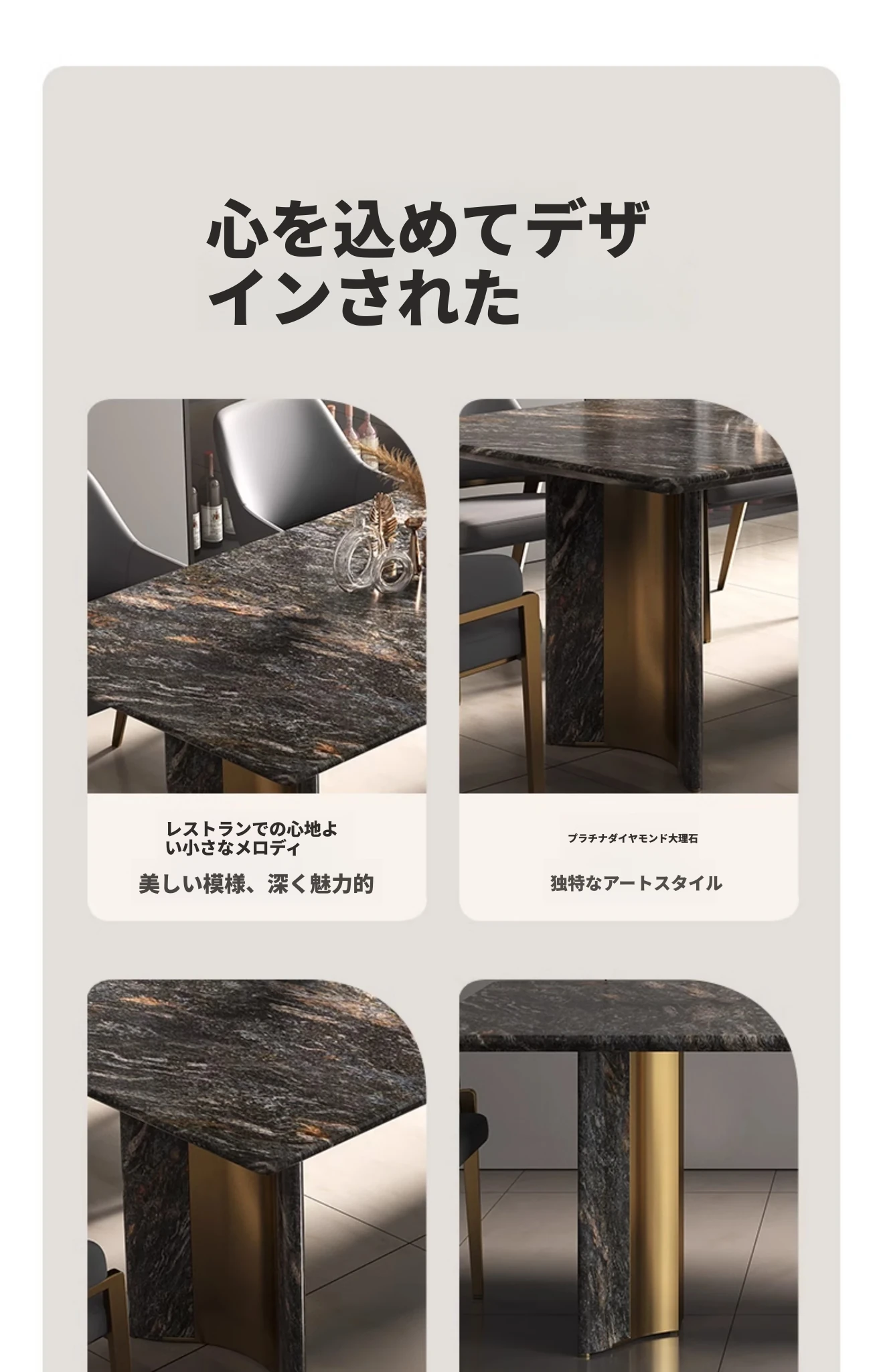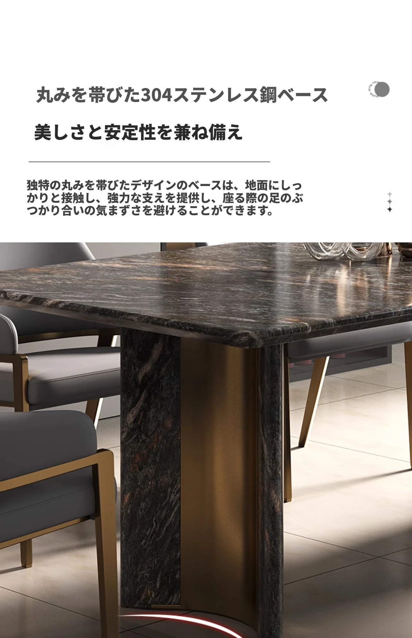 【プラチナダイヤモンド天然ラグジュアリーストーン】1.8メートルダイニングテーブル