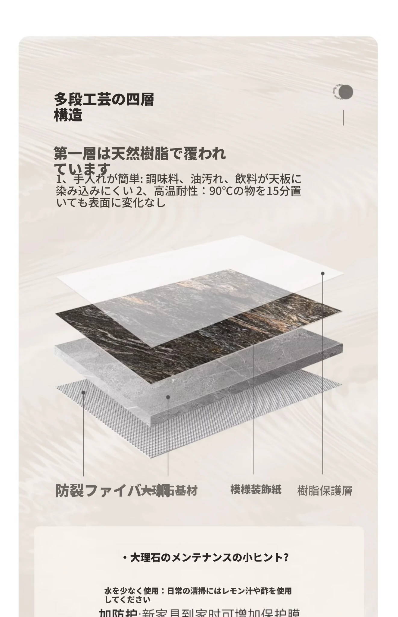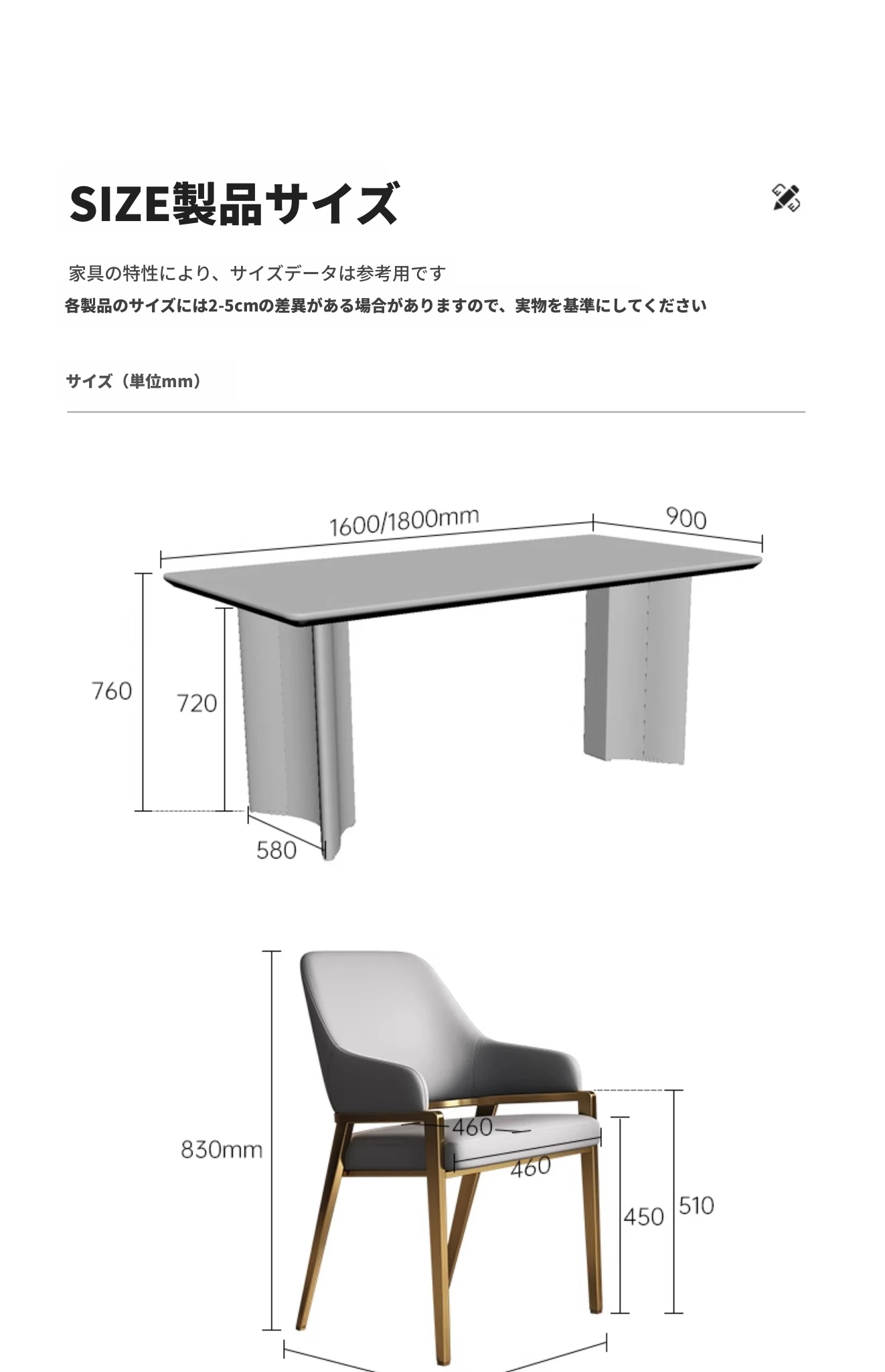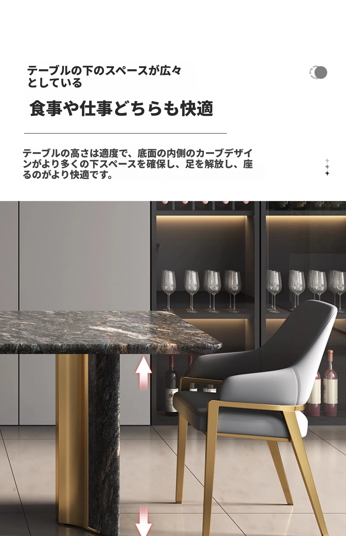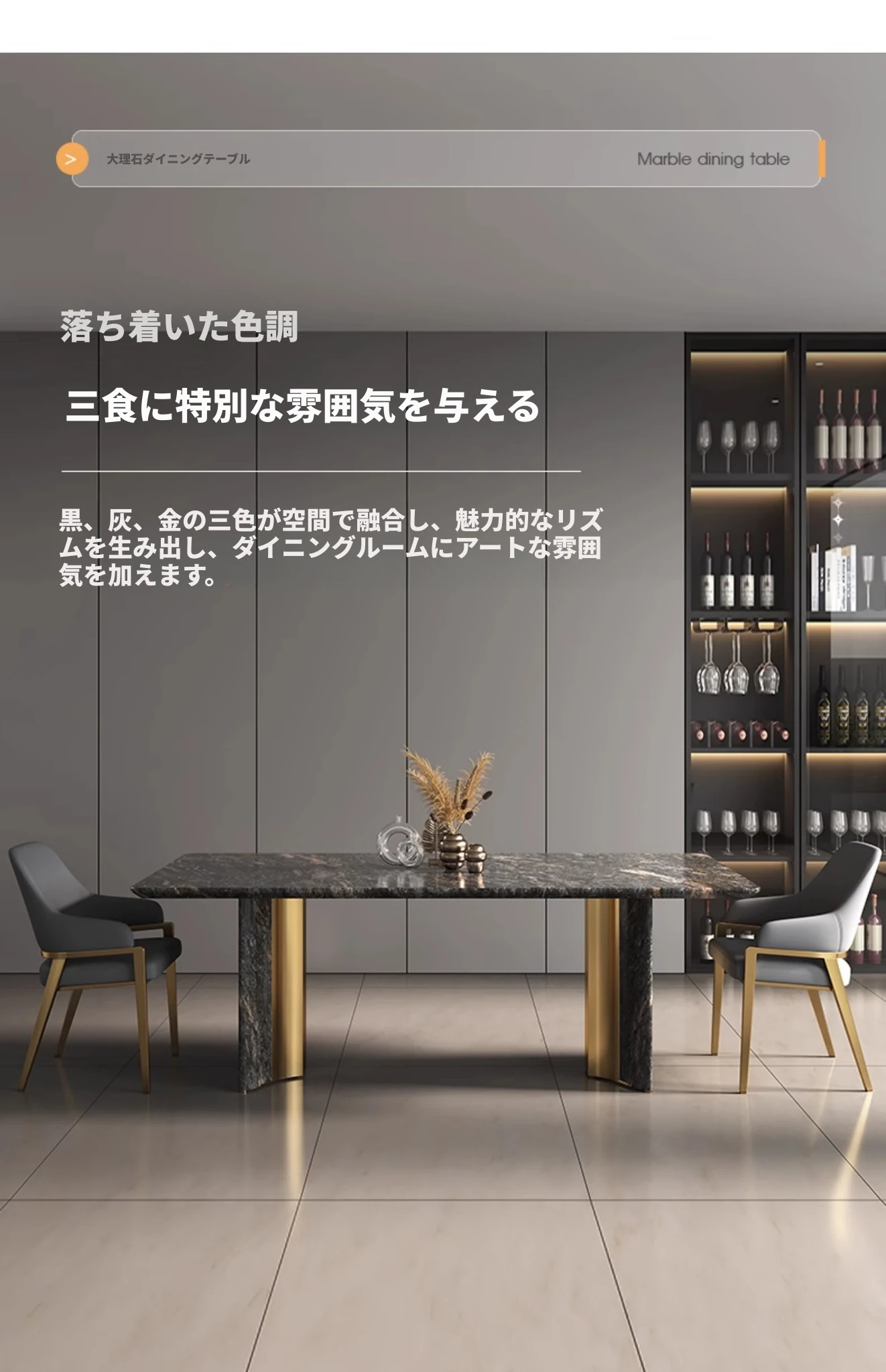【プラチナダイヤモンド天然ラグジュアリーストーン】1.8メートルダイニングテーブル