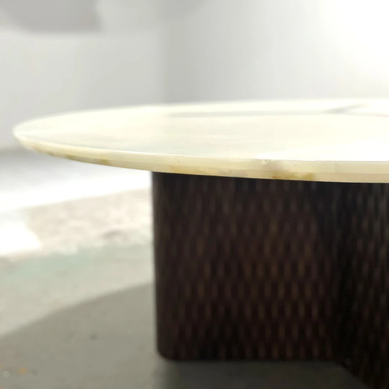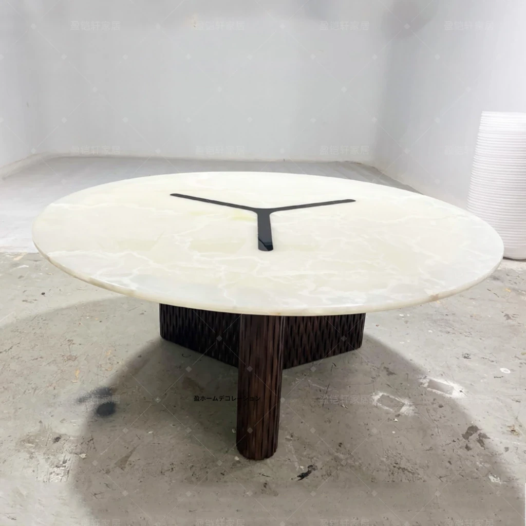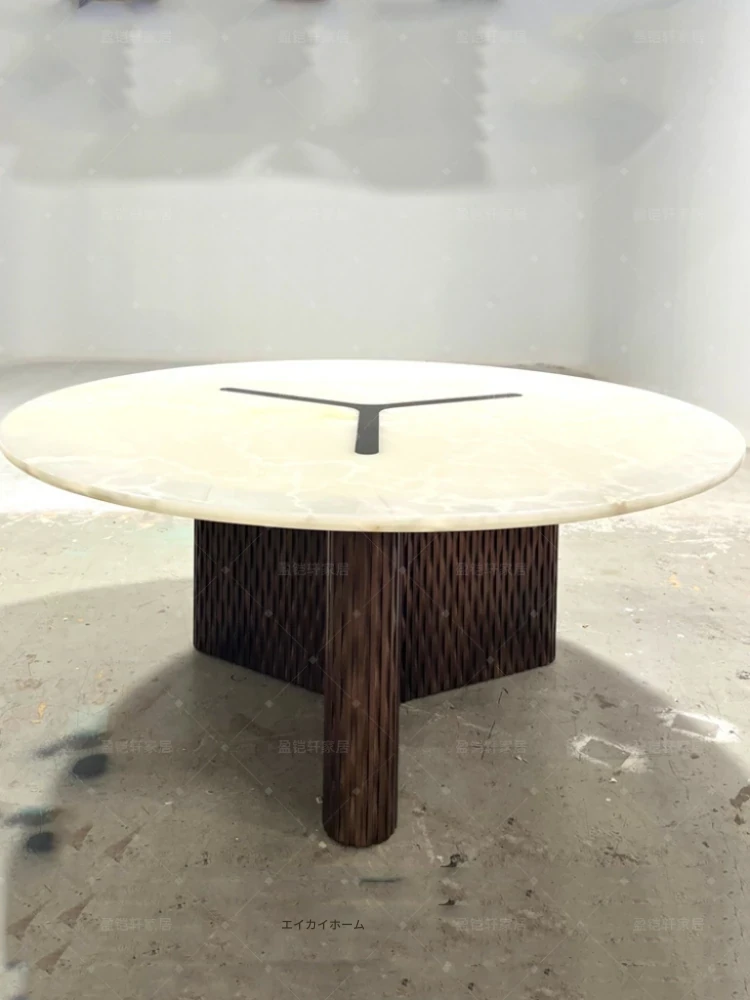 イタリアンラグジュアリー大理石ダイニングテーブル|デザイナーズヴィラ向け|高級感あふれるアートデザイン|個性的な形状で特別な空間を演出!