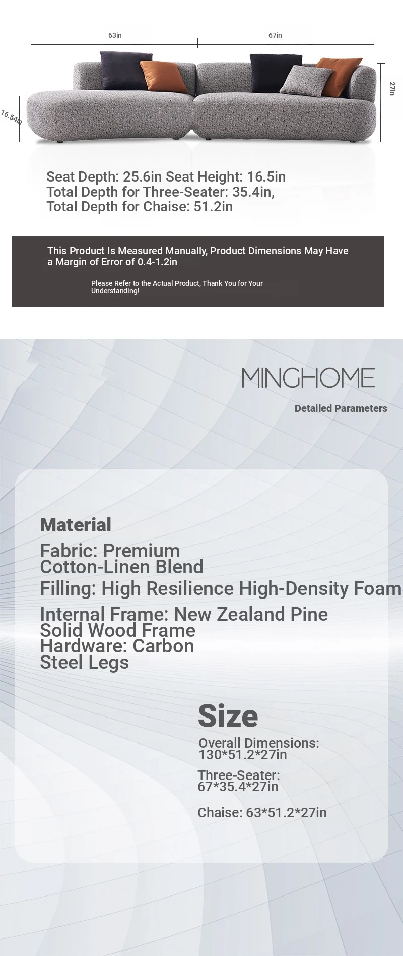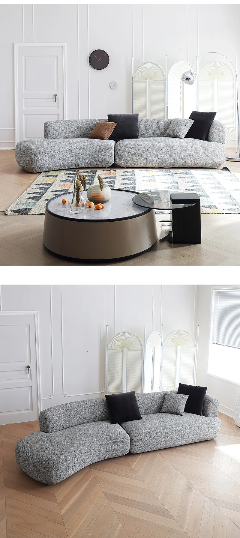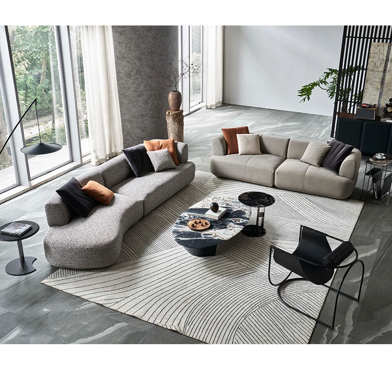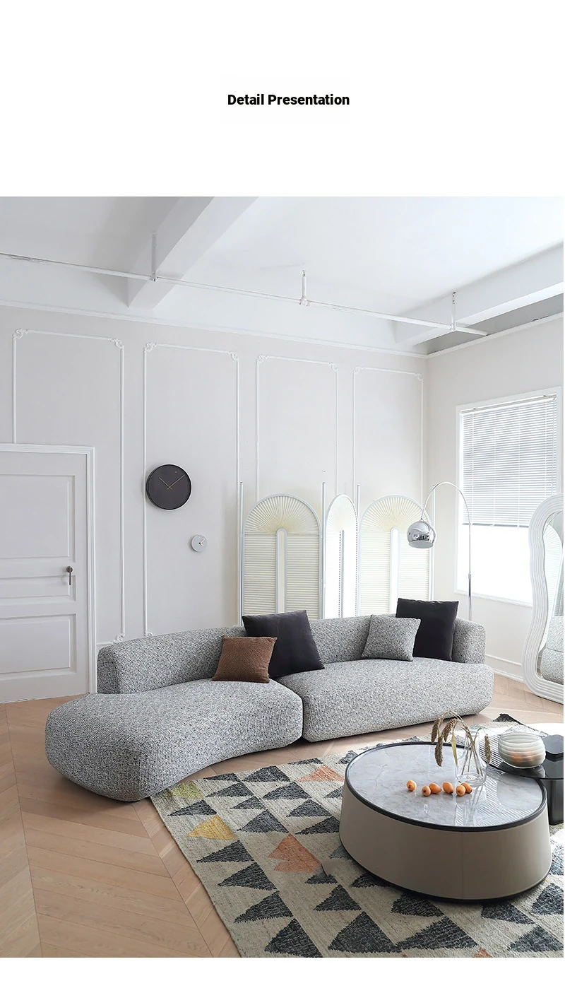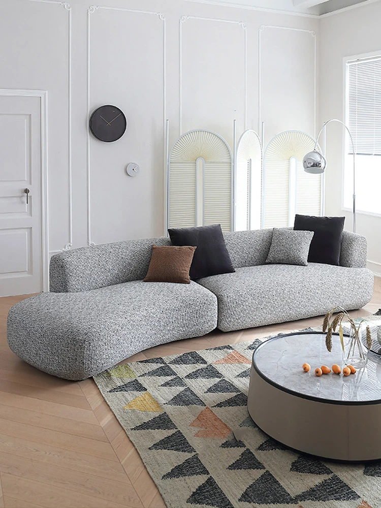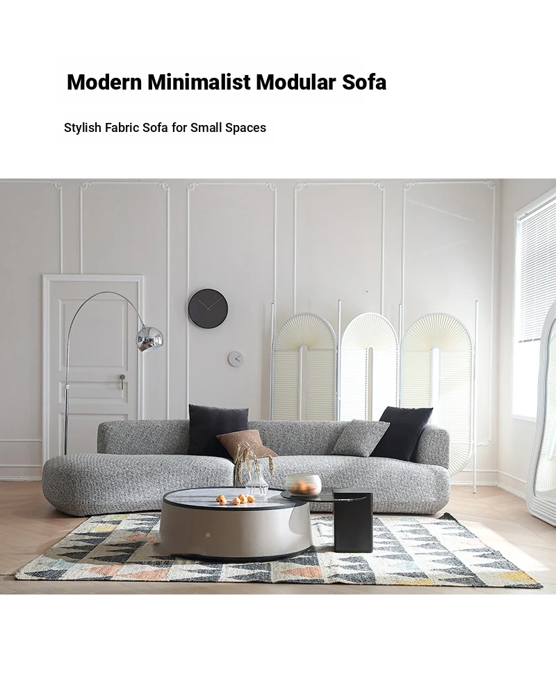 Italian Minimalist Cotton-Linen Sofa - Chic & Luxurious Modular Design for Small Spaces, Featuring Genuine Leather. Perfect for Modern Living!