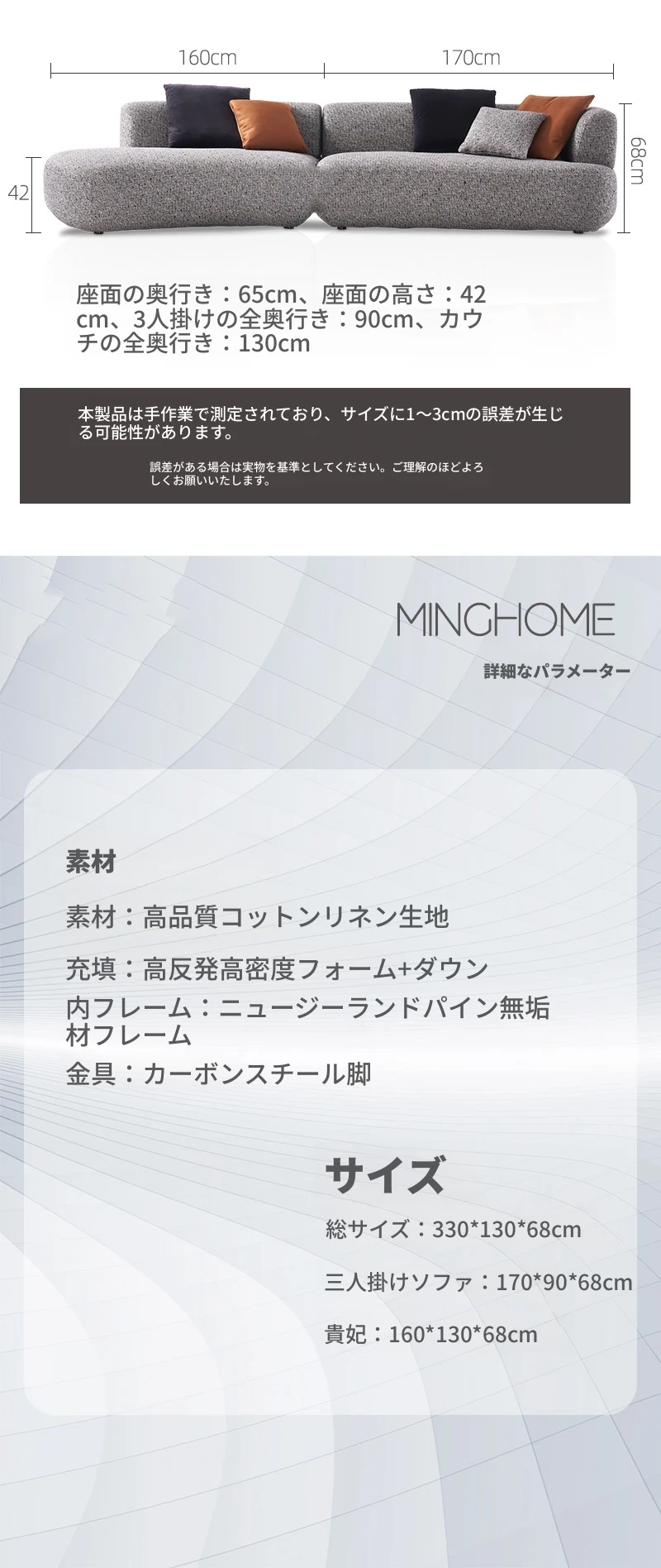 イタリアンミニマルデザインのコットンリネンソファ - 個性的でラグジュアリーなスタイル!自由に組み合わせ可能な新型小型ソファで、コンパクトなスペースにもぴったり。あなたのリビングをおしゃれに彩ります!