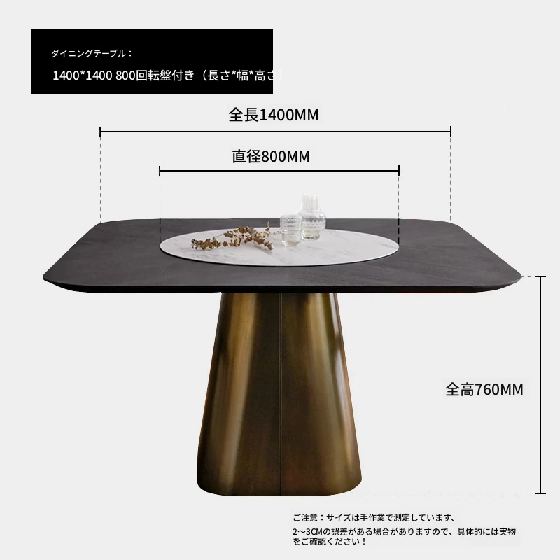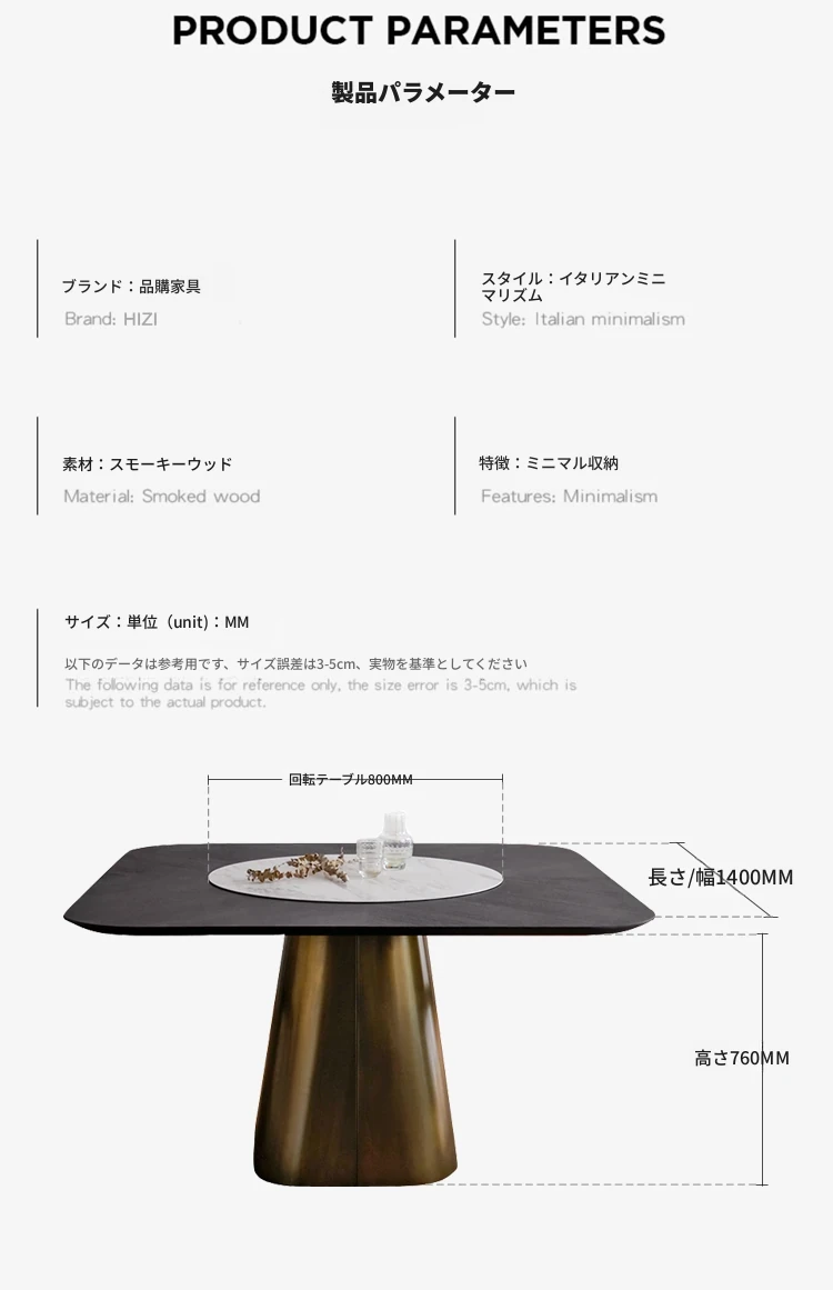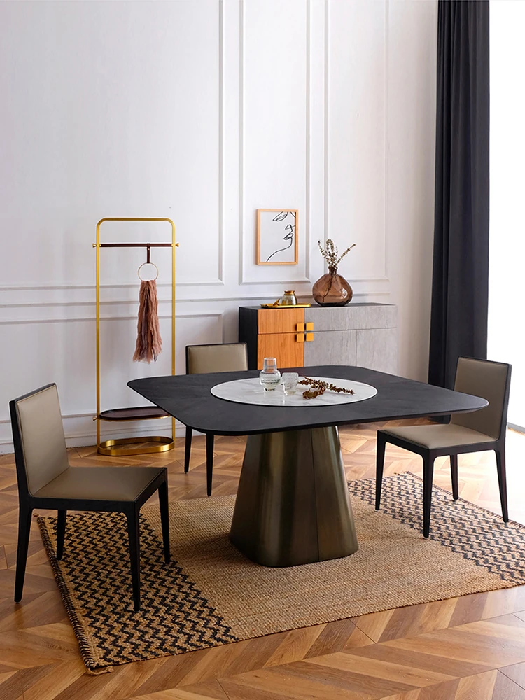 イタリアンミニマリストダイニングテーブル 1.4m 正方形 大型ヴィラ向け 八仙テーブル 岩板仕様 回転プレート付きで使い勝手抜群!洗練されたデザインで、家族や友人との素敵な食事の時間を演出します。
