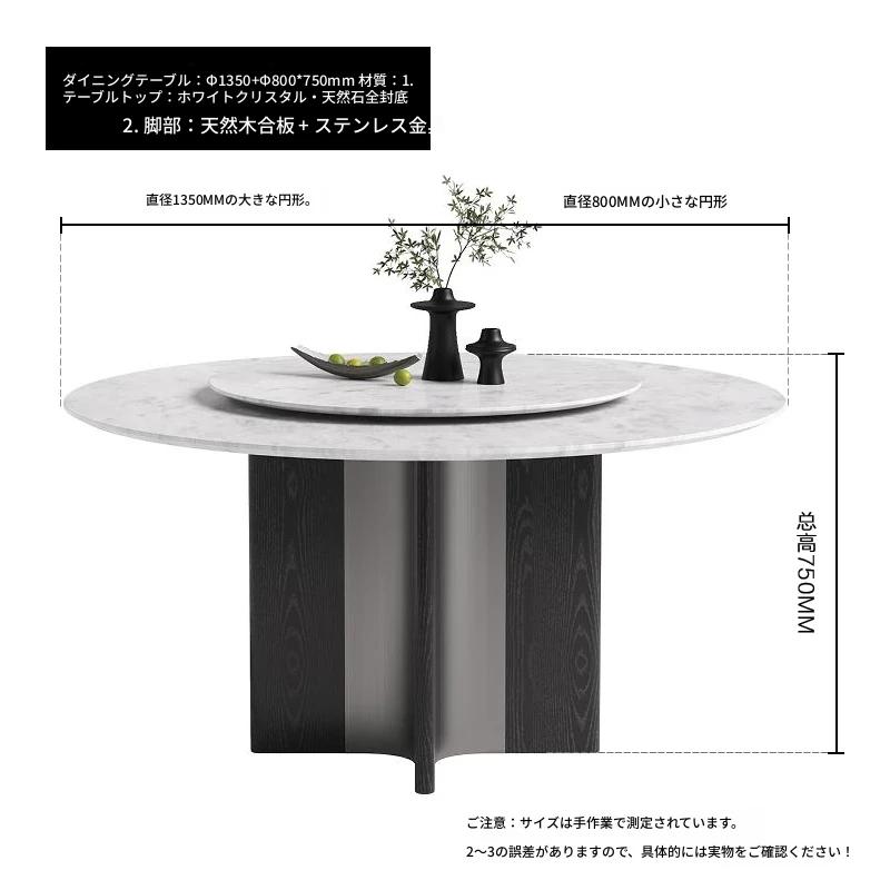 イタリアンミニマルデザインのホワイトクリスタル大理石製2層ラウンドダイニングテーブル、天然素材の贅沢な食卓。2025年の新作、軽やかなラグジュアリーをお楽しみください!